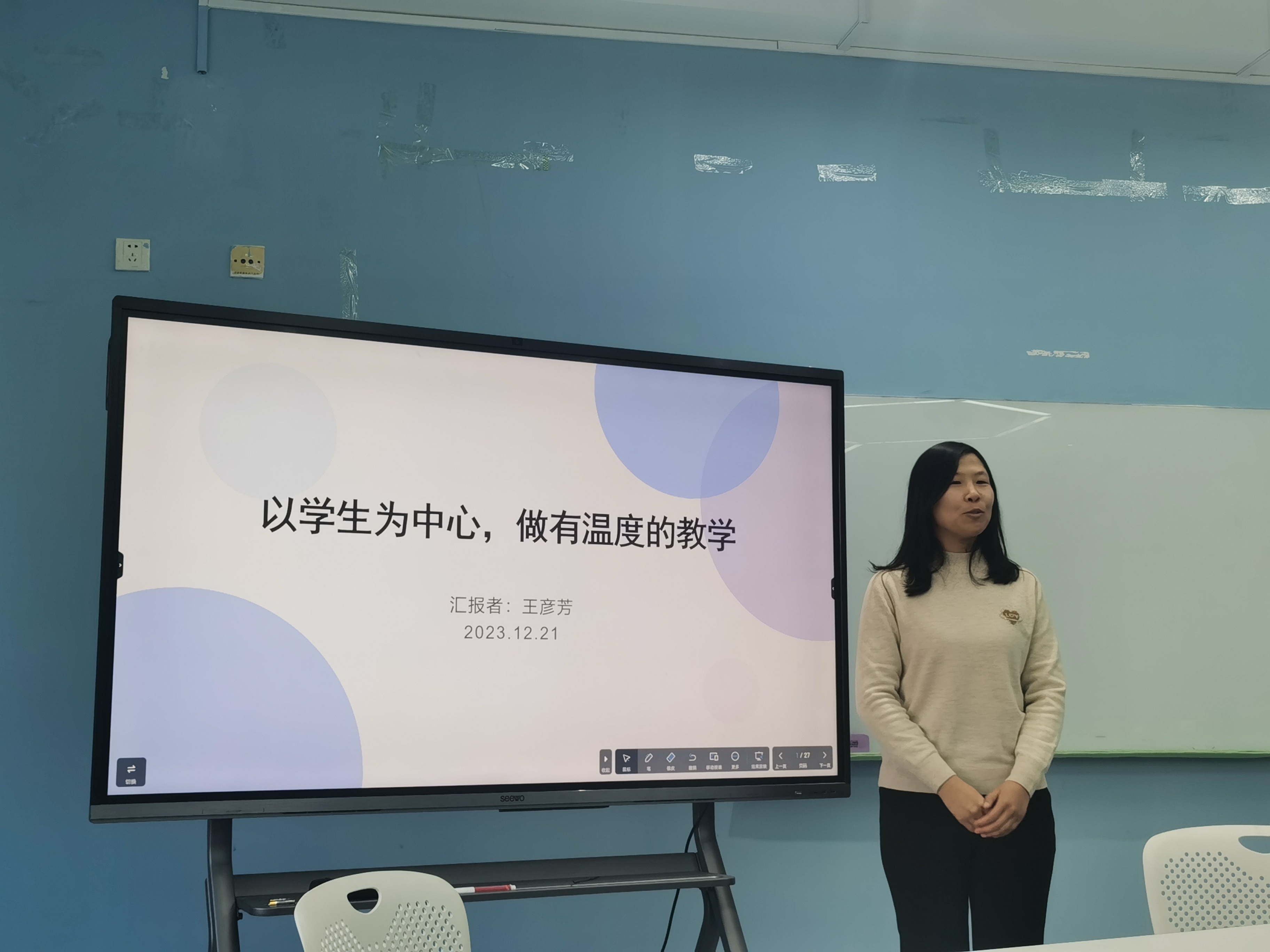 王彦芳老师以“以学生为中心,做有温度的教学”为题进行了主题交流。在2023年学校教学技能大赛中,王彦芳老师获得医学高级组三等奖,但是她仍感觉现场发挥不理想,赛后进行了及时的反思和调整,在本学期分别开展了课堂mini-PBL探索,并在OBE理念指导下,对实验项目进行了调整和优化,通过反思和改革,学生的学习兴趣提高了,教学效果有了明显改善。参会老师们纷纷对王彦芳老师这种不断反思、持续改进的研究精神点赞!