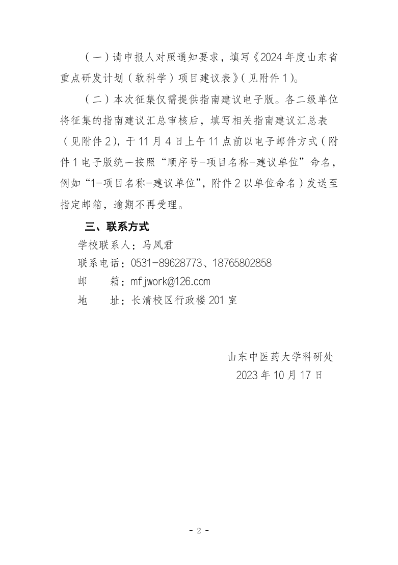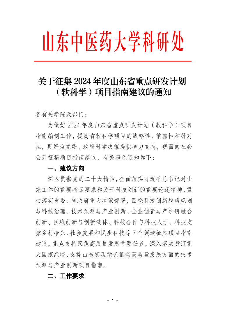 关于征集2024年度山东省重点研发计划 (软科学)项目指南建议的通知