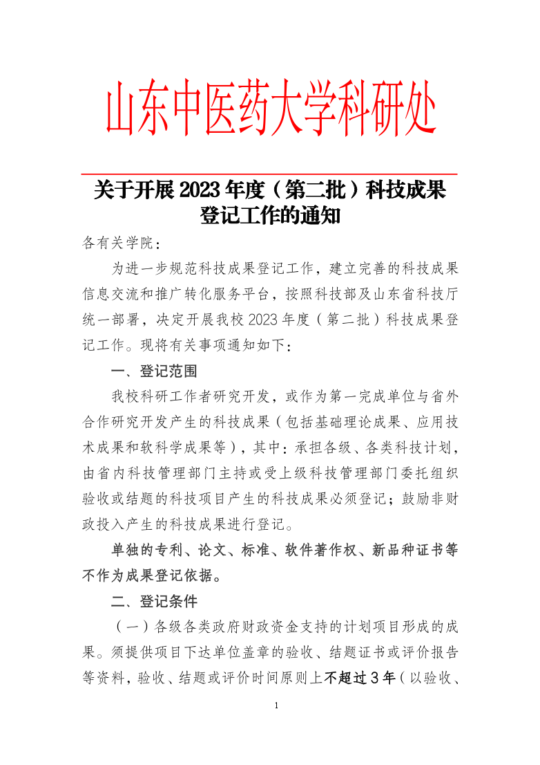 关于开展2023年度(第二批)科技成果 登记工作的通知