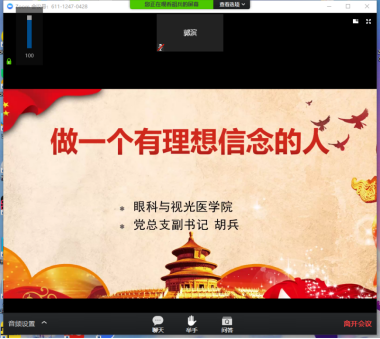 、针灸推拿学院、护理学院、马克思主义学院、健康学院、眼科与视光医学院六院分党校联合开展入党积极分子线上党课培训。5月6日晚,眼科与视光医学院党总支副书记胡兵老师,以“做一个有理想信念的人”为主题,通过网络直播为547名入党积极分子开展党课培训,其中自拍流出
