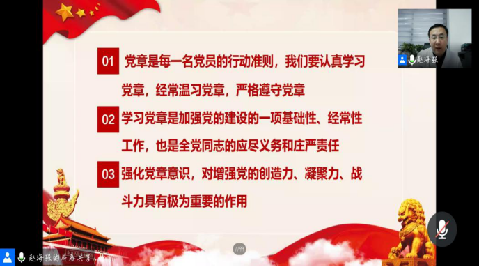 课上,赵老师组织大家集中学习了《中国共产党章程》,并联系生活实际和党的特点,解读了相关重点内容。他强调,《中国共产党章程》是党赖以建立和活动的法规体系的基础,是党的各级组织和全体党员必须遵守的基本准则和规定,具有最高党法、根本大法的效力。积极分子要以《中国共产党章程》为根本,坚持以人民为中心,践行为人民服务的宗旨,时刻规范自己的行为,增强四个意识,充分发挥先锋模范作用,影响和带动身边人,共同进步,稳步发展。同时,赵老师鼓励同学们要以实际行动学习践行中国共产党章程,担当青春使命,向优秀致敬,要奋力成才,坚定理想信念,严谨不苟,创新不止,志存高远,自强不息,时刻为成为一名优秀的党员而准备着。