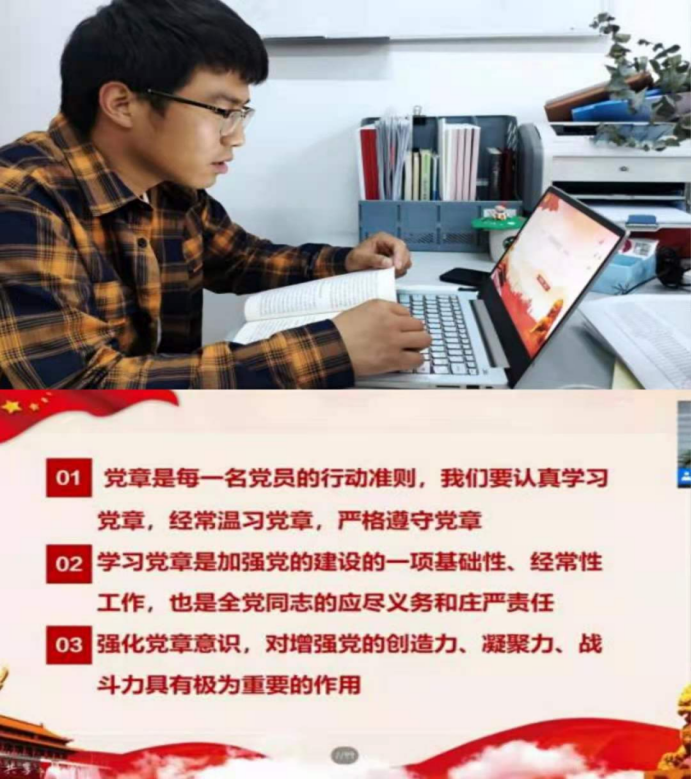 4月11日,赵海强老师组织大家集中学习《中国共产党章程》,解读了相关重点内容,鼓励同学们要以实际行动学习践行中国共产党章程,担当青春使命,志存高远,自强不息;成兆万老师鼓励大家树立远大理想信念,将党的宗旨——全心全意为人民服务践行到实际生活中,自觉向党组织靠拢。老师们的谆谆教诲,使各位入党积极分子受益匪浅。