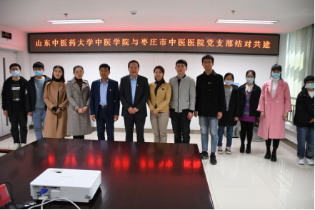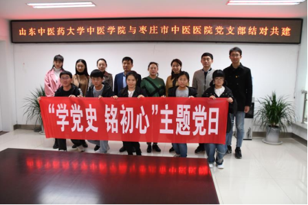 教工第一党支部、第八党支部党员代表与枣庄市中医医院党支部结对共建,共同开展“学党史,铭初心”主题党日活动,进一步发挥党建引领作用,重温红色精神,引导党员坚定理想信念、凝聚发展合力。