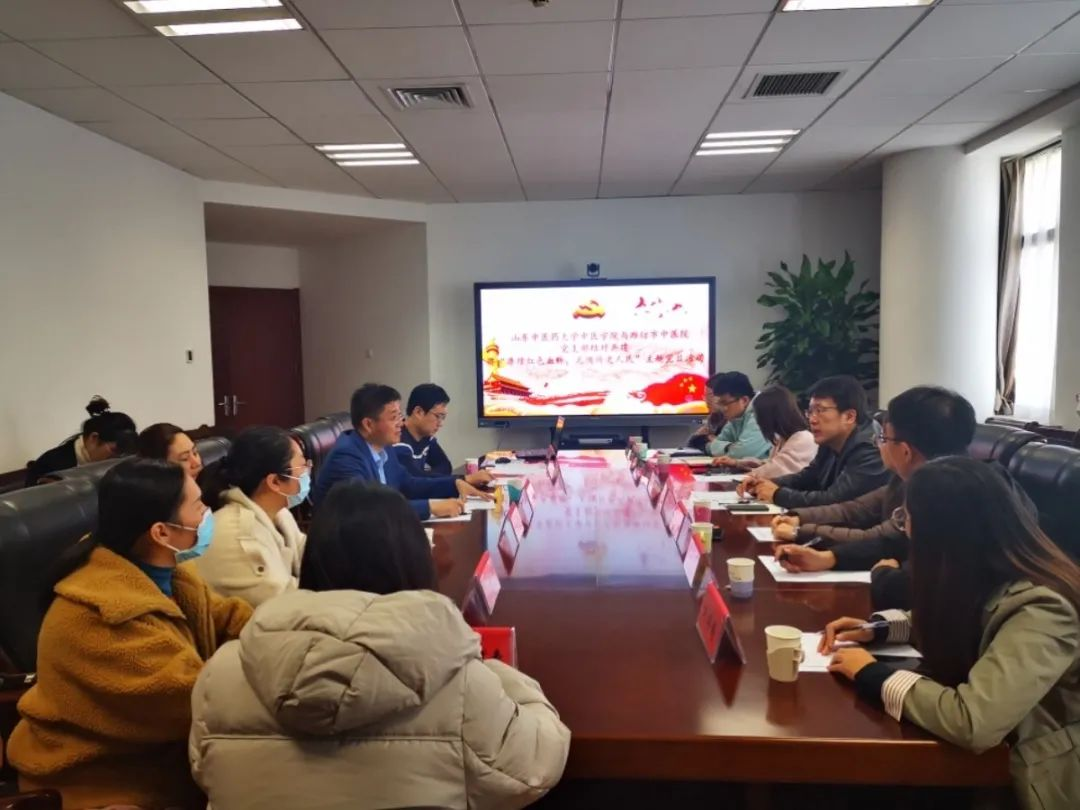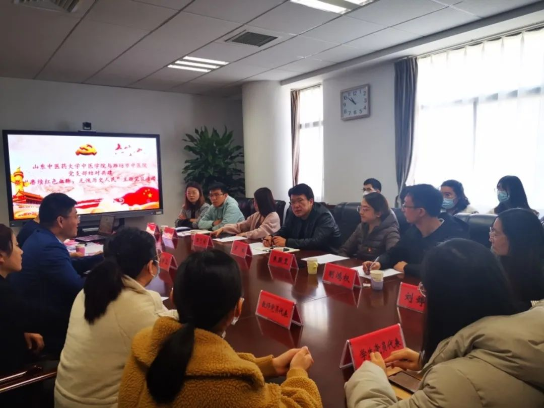 党总支副书记芦琳同志、潍坊市中医院党委副书记杜振同志分别就学院和医院的党建情况及党史学习主题教育开展情况进行发言。学院党员代表朱默里同志、医院党员代表刘振宇同志以及学生代表介绍了各支部情况,陈艺萌同志带领学习了习近平总书记重要文章《用好红色资源、赓续红色血脉,努力创造无愧于历史和人民的新业绩》,并为党员同志们宣讲《弘扬红船精神,走在时代前列》党史专题党课。