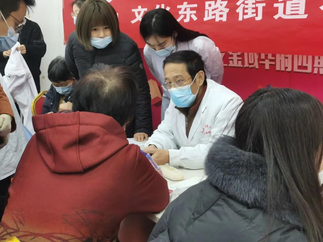 活动现场,志愿者做好了严格的消毒和防护工作,切实保护好师生和社区居民的生命健康。志愿者们运用传统中医配合现代医学设备,向居民提供了中医脉诊、测血压、测血糖等健康服务,对于适合的社区居民给予针灸、推拿、耳穴压豆等中医特色治疗技术。同时,义诊人员针对现在天气寒冷,老年人抵抗力差、易患病等情况,详细科普了中医顺应四时、养生防病的健康理念和老年居民自我保健的具体方法。
