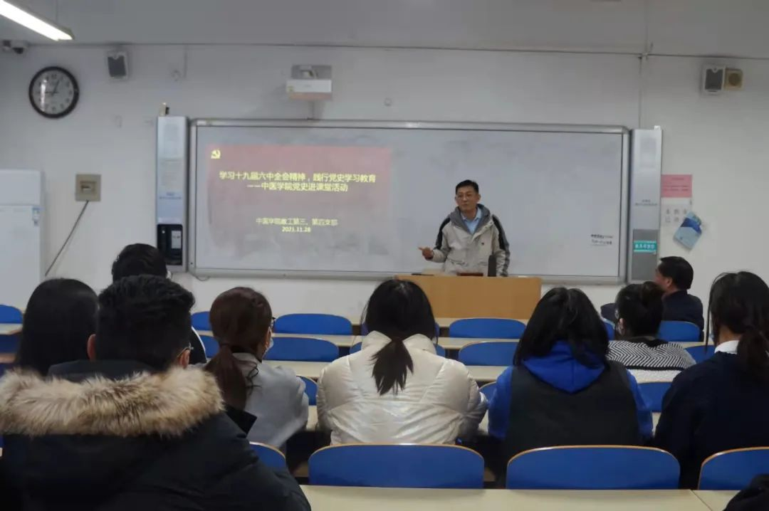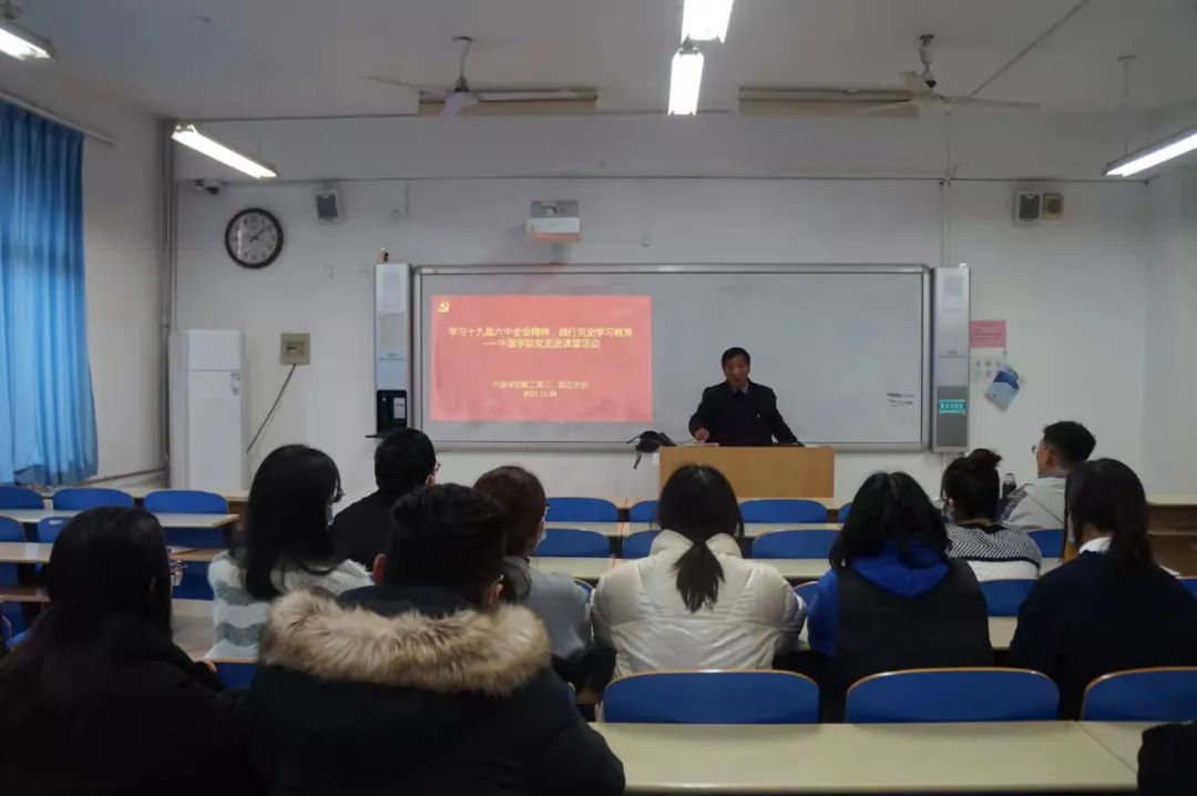 本次党课活动由教工第党四支部书记张颖颖主持。党课上,井主任以“学习十九届六中全会精神,践行党史学习教育”为主题,用详实的史料和饱满的热情,为入党积极分子和预备党员开展了一堂生动形象的党史教育课。讲堂上,井主任以第一枚国印纪念品、史料照片、党史书籍等红色物品为承载,讲述了从1921年中国共产党诞生到1949年中华人民共和国成立以来,我党历经二十八年可歌可泣的奋斗道路,歌颂了三千多万革命志士的献身精神。