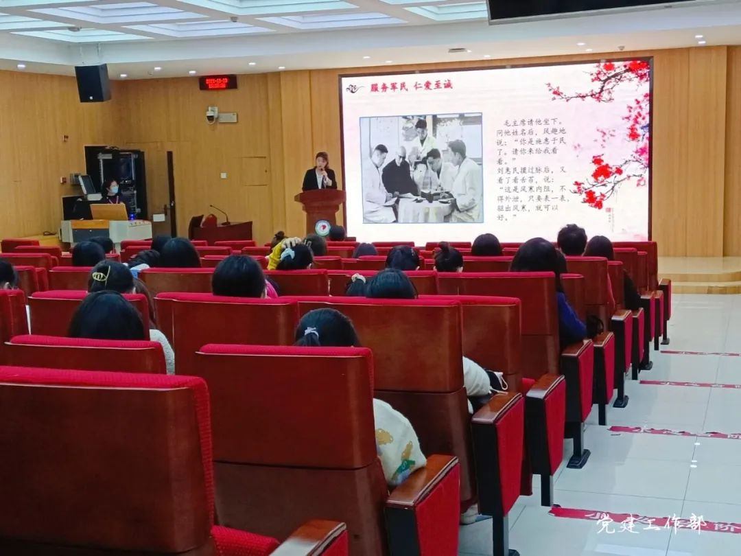 红医精神是中国革命精神系谱中的一员,价值内涵包括政治坚定、对党忠诚的政治品格,救死扶伤、大爱无疆的价值取向,埋头苦干、无私奉献的工作作风。红医精神在中华民族走向伟大复兴的今天仍具有极强的现实意义。宣讲人号召青年大学生要继承和发扬红医精神,在点滴行动中推动中医药事业建设,打造好中医药文化名片,为中华民族伟大复兴贡献一己之力。