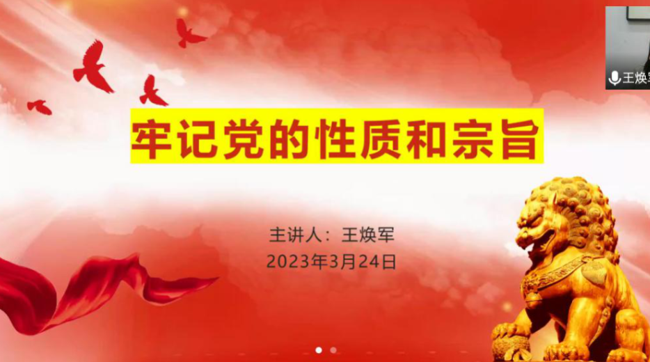 王焕军老师开展了以“牢记党的性质与宗旨,全心全意为人民服务”为主题的线上主题党课。
