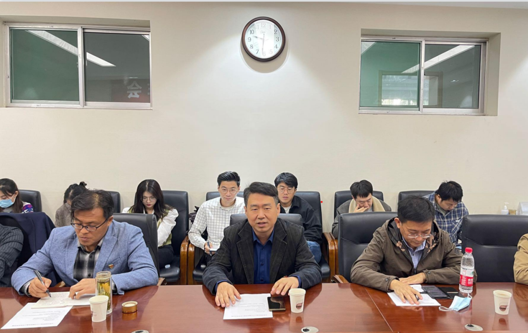 党总支于千佛山校区109会议室召开贯彻二十大精神党建工作会。党总支书记姜锡斌、党总支副书记芦琳、党总支组织员李玉婷以及各教工、学生党支部书记参会。
