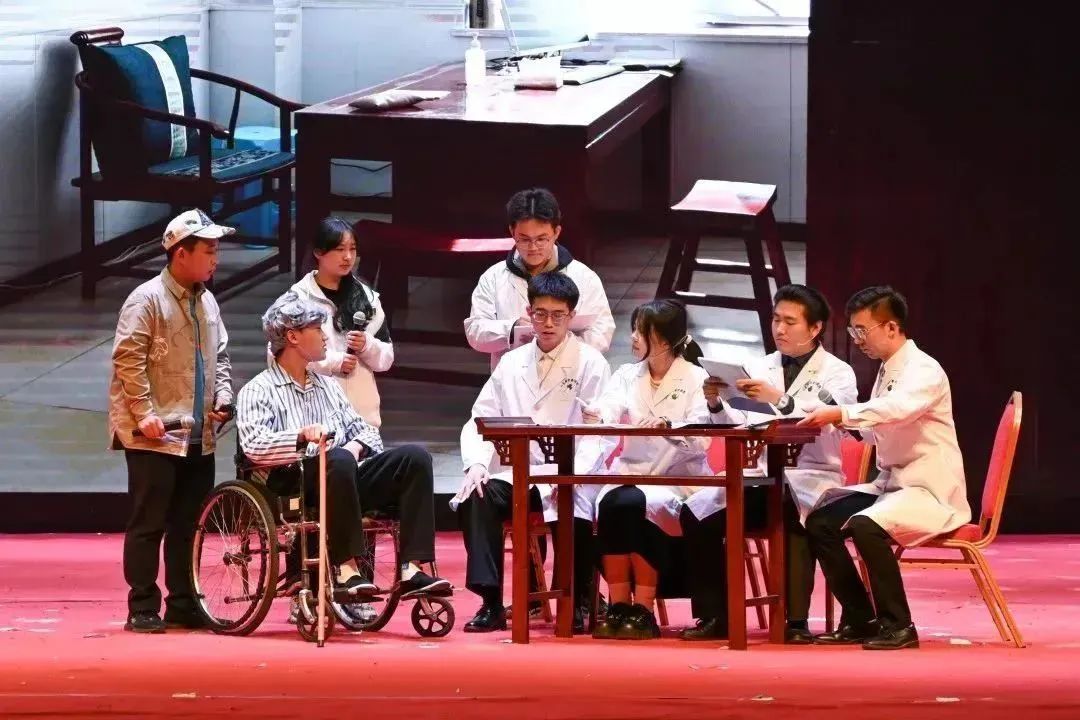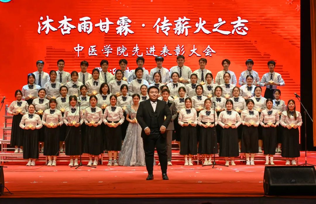 文艺汇演在舞蹈《美丽中国》中拉开帷幕,器乐合奏《灯火里的中国》抒发了对祖国的无限深情和美好祝福;朗诵《穿越时空的对话》讴歌了五千年中医文化的无穷魅力;歌曲《理想照耀青春》《燃烧》《神奇中医》以青春之名唱响信仰的力量;情景剧《小王的临导制日记》再现了学生与临床导师共论病例、共研方案、共面挑战的温情瞬间;模特走秀《绽放》等精彩的节目为观众呈现了丰盛的视听盛宴;舞蹈《雨涧春行图》《京韵》用灵动的舞姿展现了中医学子朝气蓬勃、青春激昂的精神风貌;演出在师生合唱《强国一代有我在》中完美谢幕。