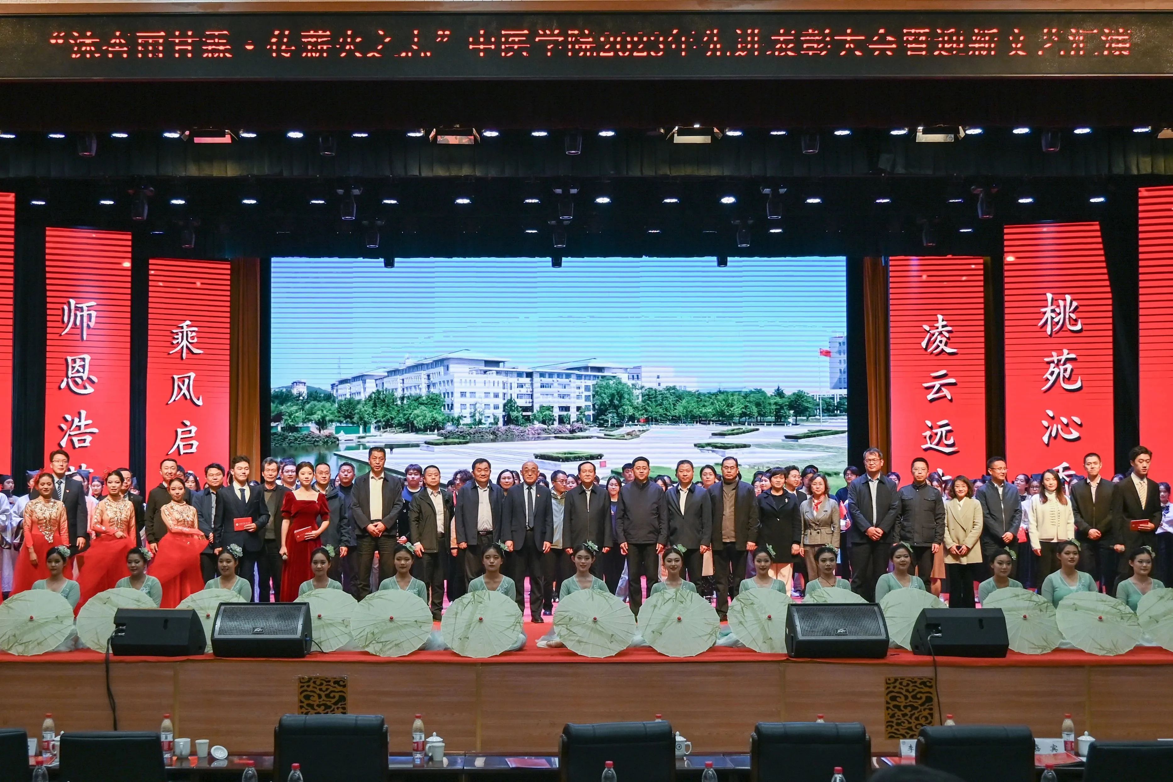 “沐杏雨甘霖 传薪火之志”2023年先进表彰大会暨迎新文艺汇演在长清校区大学生活动中心举办。校党委书记张立祥,副校长张玉龙出席活动,和广大师生一起观看演出并为获奖学生颁奖。