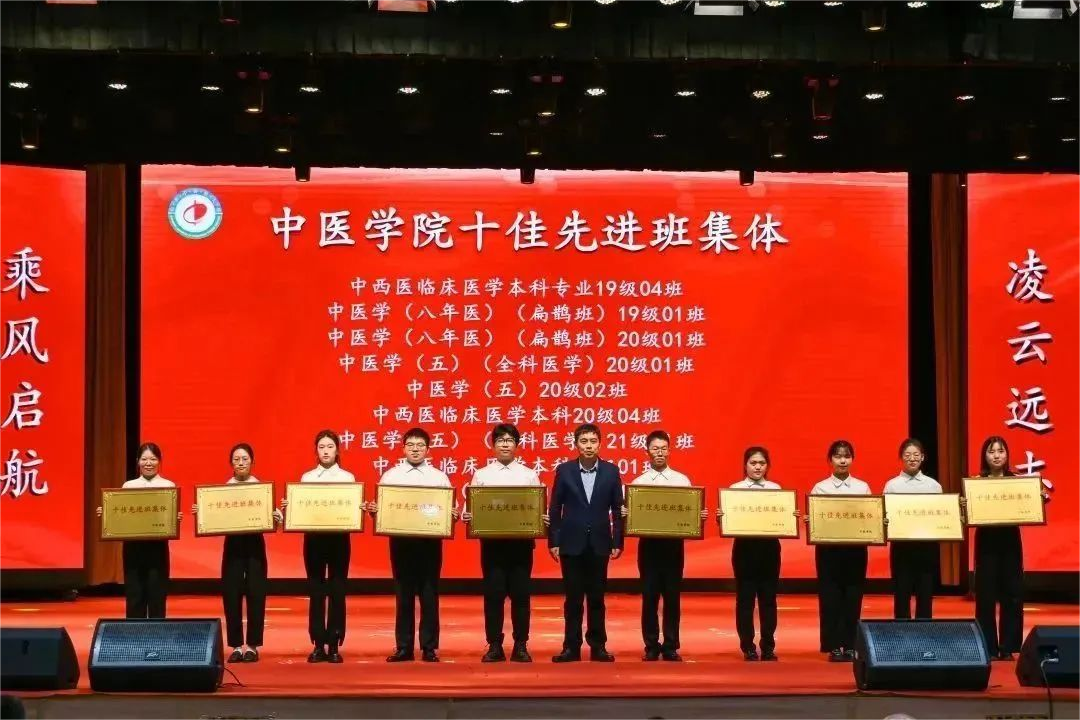 大会表彰环节由学院党委副书记芦琳主持。首先导师代表田虎、学生代表孙百合分别上台交流发言,畅谈对临床导师制的认识与体会。随后为临床导师颁发聘书、为联合培养单位授牌。大会还表彰了学院“十大自强之星”“十大学业之星”“十大科研之星”“十佳先进班集体”“优秀学生党支部”等先进典型代表。