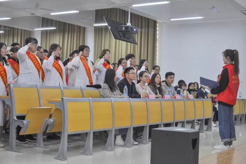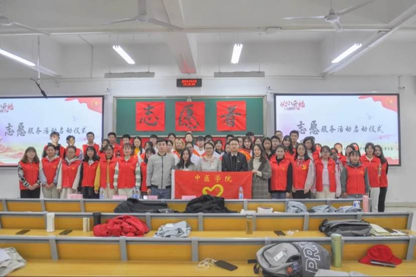 办公室各位辅导员老师,并进行了精彩的致词。在讲话中朱默里老师对志愿者们的表现寄予厚望。她强调,生活在社会中的我们应当回报社会,青年学生应当在给予和奉献中实现自我的价值,收获人生的力量。作为新时代的年轻人,我们中医学子将永怀一颗济世之心,将远大的理想抱负和实际相结合,仰望星空,脚踏实地,坚持为人民谋幸福、为中华民族伟大复兴奋勇前进。随后志愿者代表张筱钰发言,从身边的故事和自身志愿者经验向大家发出呼吁:要用爱心耐心责任心,担负起时代的重任,在人生道路上走的更正更远,并带领志愿者们宣誓。气势磅礴、声音洪亮的誓词,展现着志愿者们服务社会的决心。