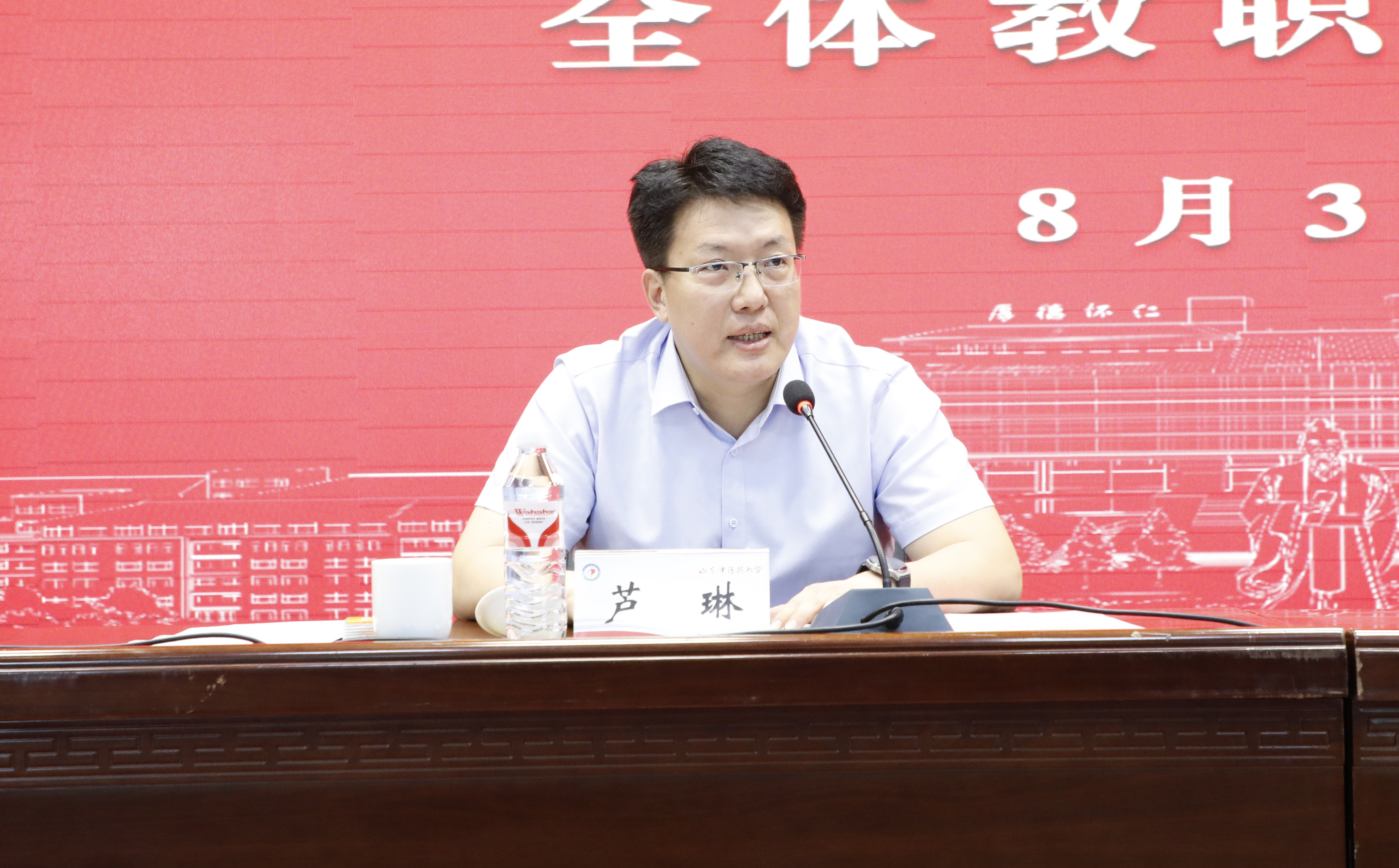 学院新一届党政领导班子成员、全体教职工参加会议。
