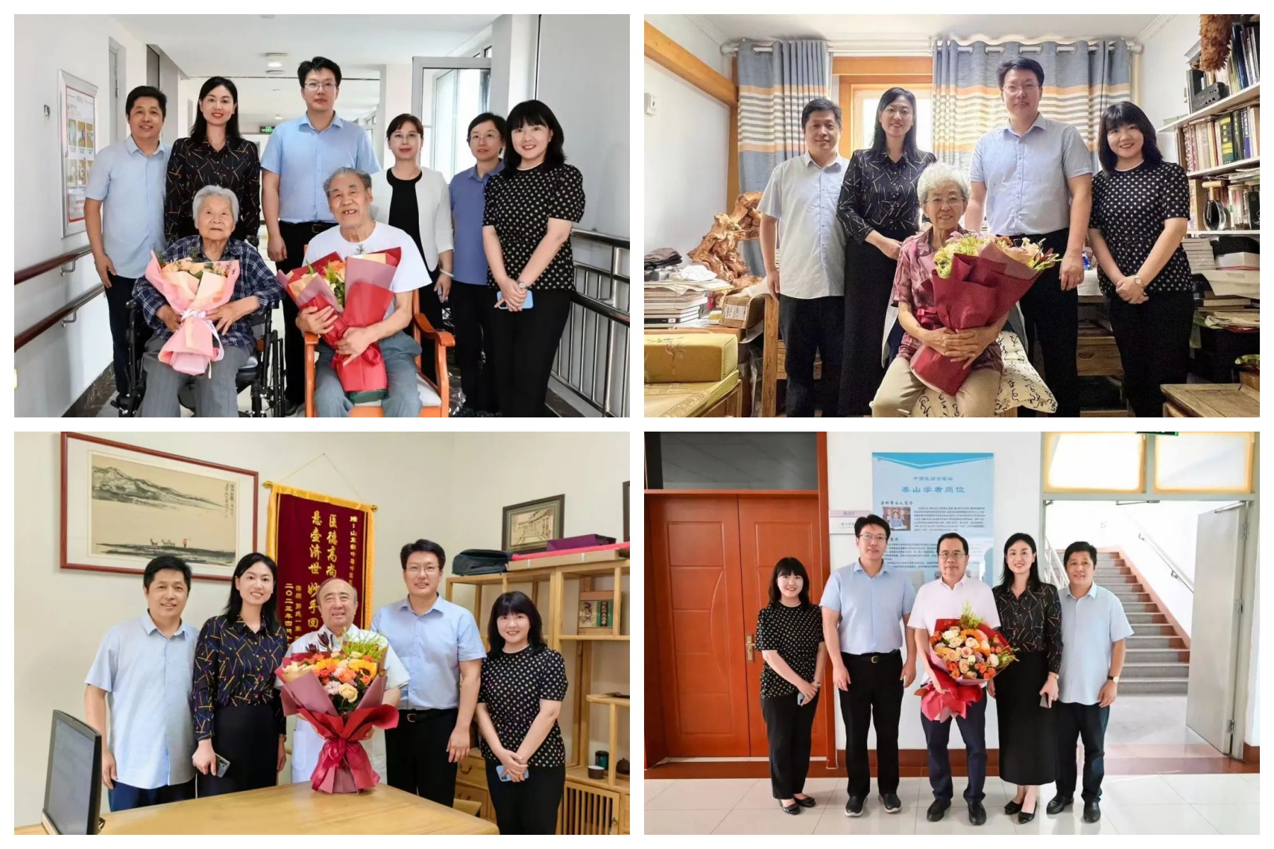 9月10日上午,芦琳、李霞带领学院党政班子一行走访看望了祝世讷、迟华基、姜建国、王世军四位老专家代表,向他们致以亲切的慰问和诚挚的祝福。每到一处,班子成员都细致询问老教授们的身体和生活情况,认真聆听他们在临床实践中的深刻感悟与宝贵经验,虚心向老专家们取经纳谏。芦琳、李霞代表班子衷心感谢老教授们为学院发展所作出的重要贡献,指出老教授是学院事业发展的宝贵财富和坚强后盾,学院的发展凝聚着老教授们的智慧和心血,希望老教授们一如既往地关心学院发展,为学院各项建设出谋划策,学院将认真倾听老教授们的意见和建议,用心、用情、用力做好全院离退休老同志的服务保障工作。