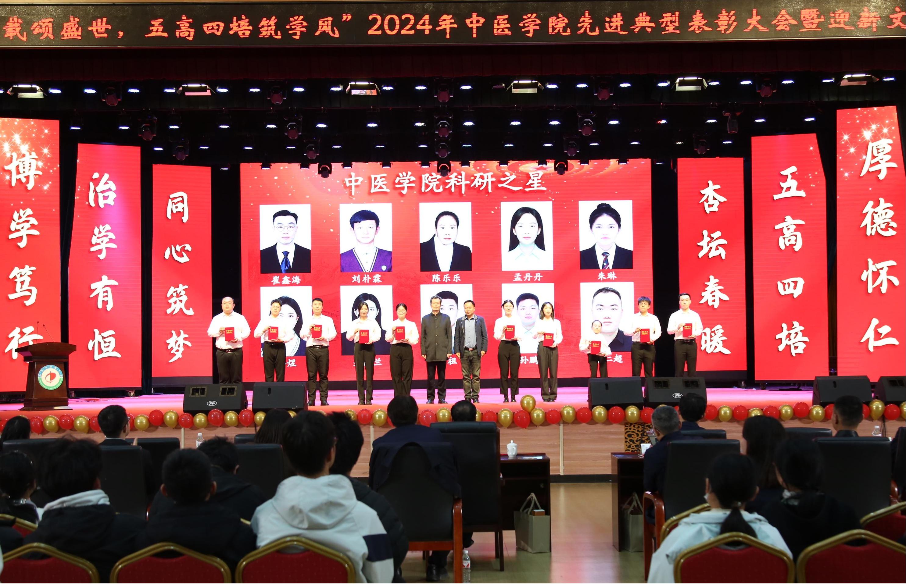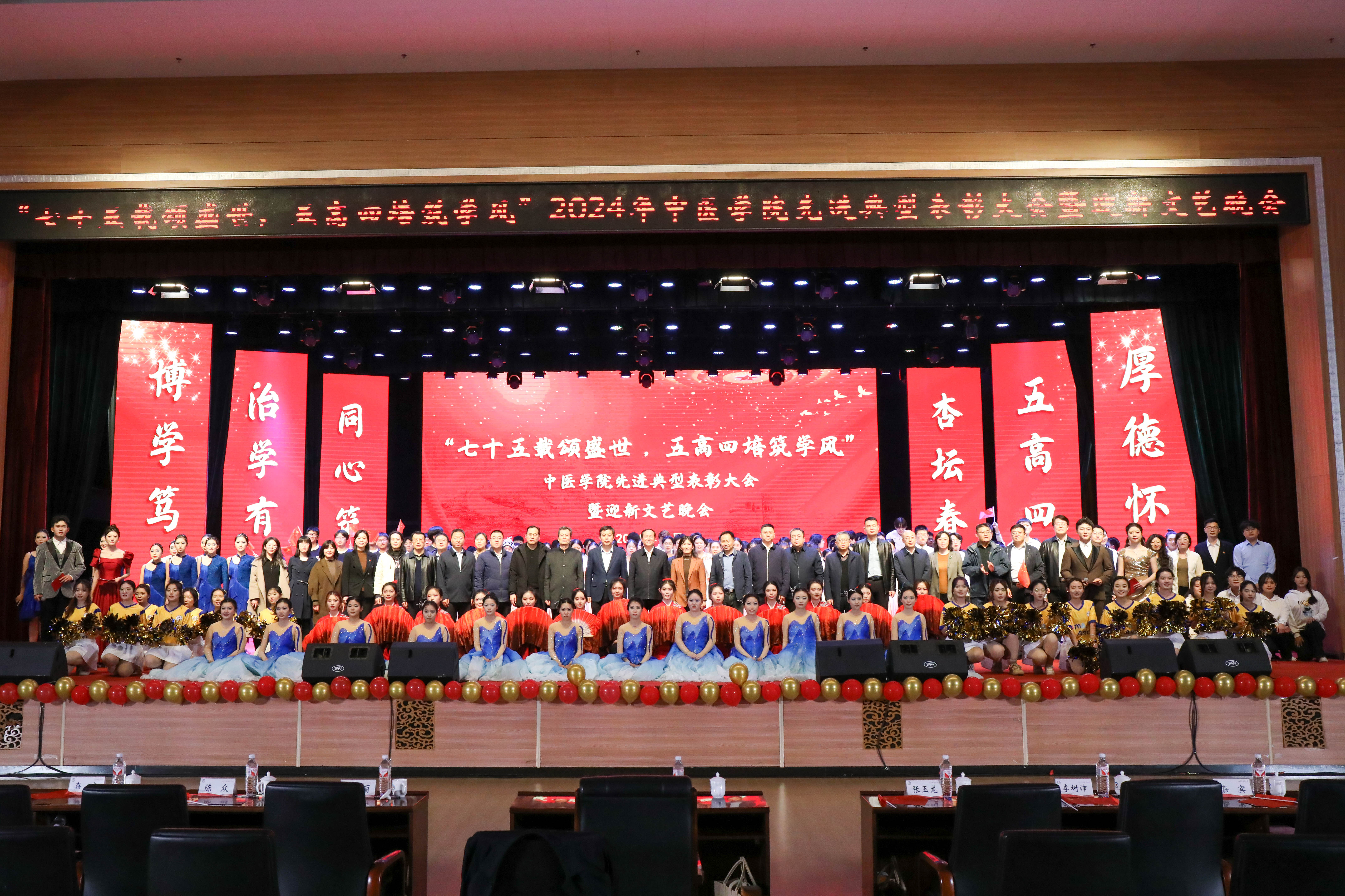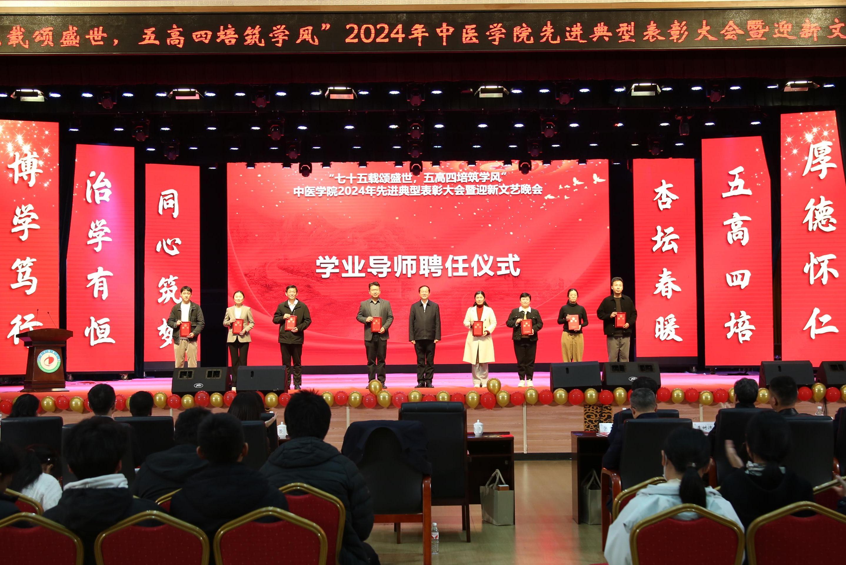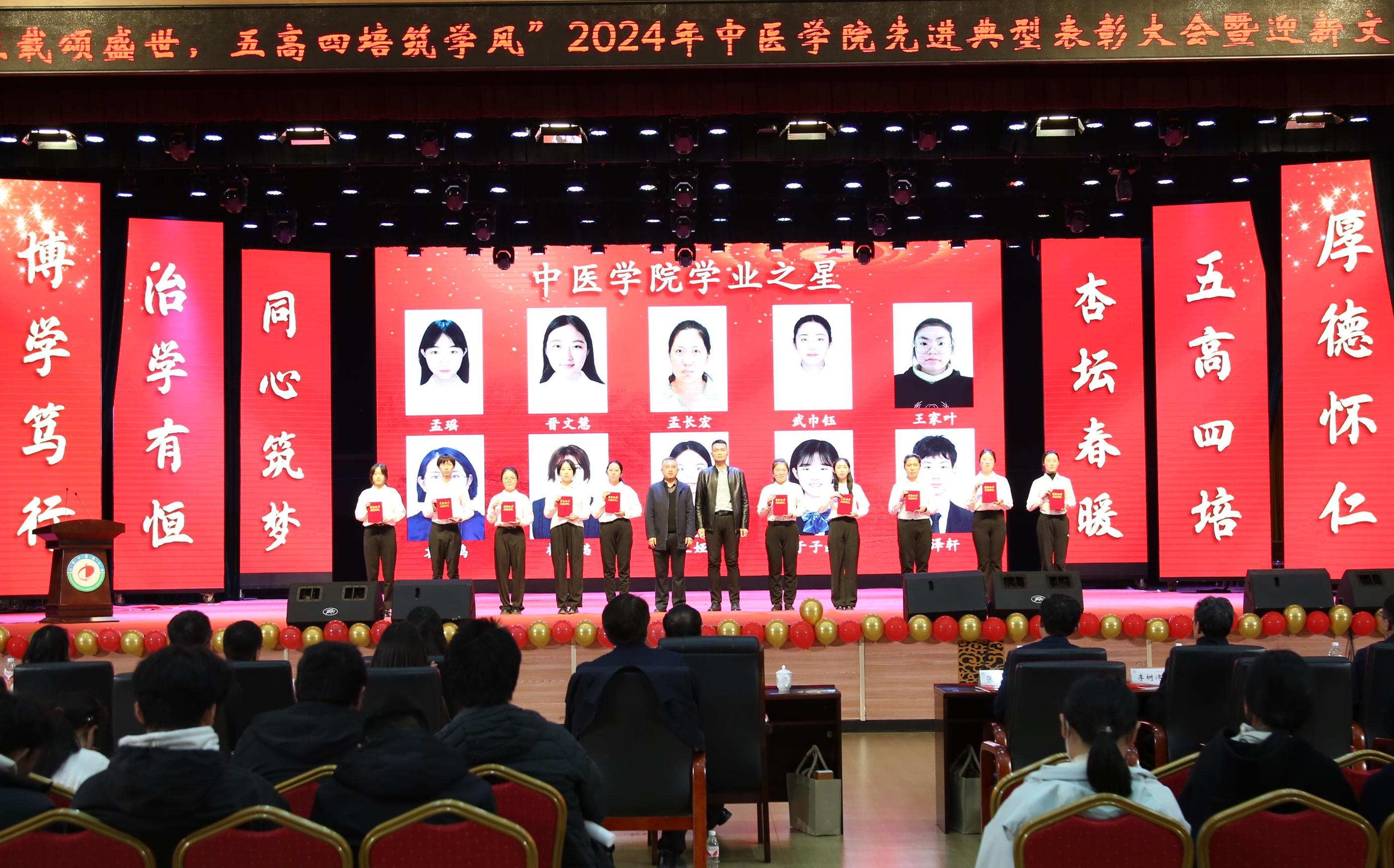 “七十五载颂盛世,五高四培筑学风”2024年先进典型表彰大会暨迎新文艺晚会在长清校区大学生活动中心举办。校党委书记张立祥,党委委员、纪委书记、监察专员王丽丽,党委委员、副校长张玉龙,党委委员、党委宣传部(教师工作部)部长陈众,山东新中鲁中医医院院长李树沛出席活动并颁奖。