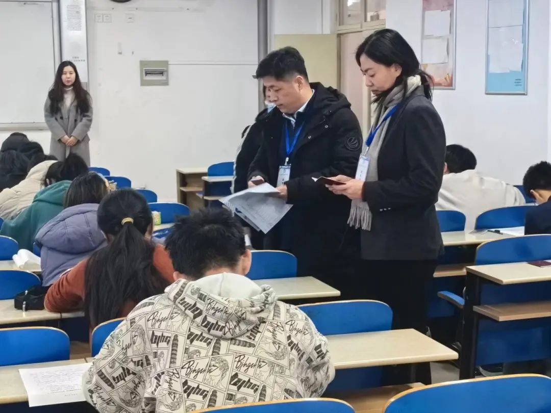 李霞通过考场现场巡视,对考试组织、考场秩序、监考教师履职、考生纪律等情况进行深入了解。现场情况显示,学院的期末考试工作安排合理、管理规范,各考场布置有序,监考教师认真负责,学生自觉遵守纪律、诚信应考,认真作答,考风考纪良好。试卷发放、备品管理、试卷装订及核验、考场指引等考务工作进行顺利,未出纰漏。