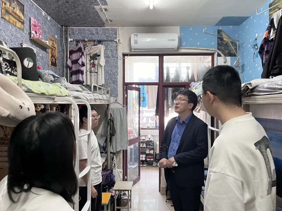 党委书记芦琳、党委副书记郭芳伶带队深入学生公寓,围绕专业认证工作要求开展宿舍环境专项检查与走访指导。通过实地查看、现场问询、整改督导等方式,全面排查安全隐患,提升公寓育人功能。