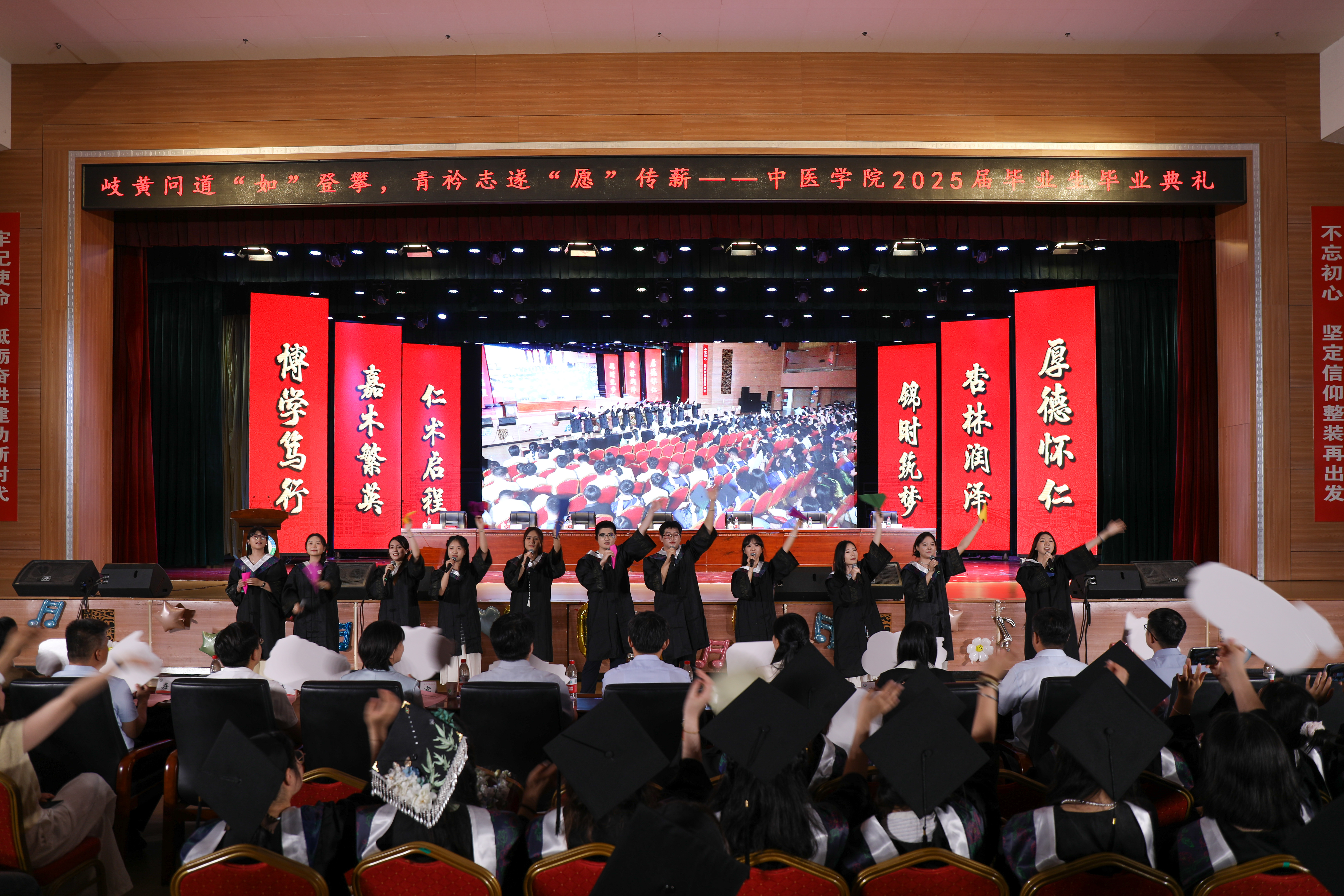 张玉龙肯定了学院毕业生五年来取得的优异成绩,并以中医文化精髓为引,向全体毕业生提出三点殷切期望:一要永葆“悬壶济世”的医者温度,筑牢服务社会的责任担当;二要恪守“大医精诚”的职业操守,以高尚医德丈量人生高度;三要秉持“守正创新”的发展理念,在传承中开拓进取。为即将踏上新征程的学子们上了一堂生动而深刻的“最后一课”。