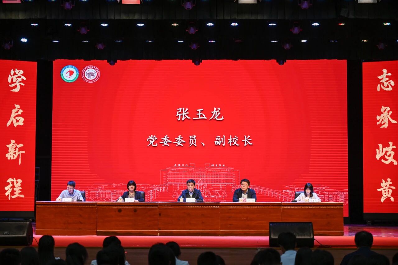 2025年新生入学教育在岐黄礼堂举行。校党委委员、副校长张玉龙出席。学院党委书记芦琳主持会议。