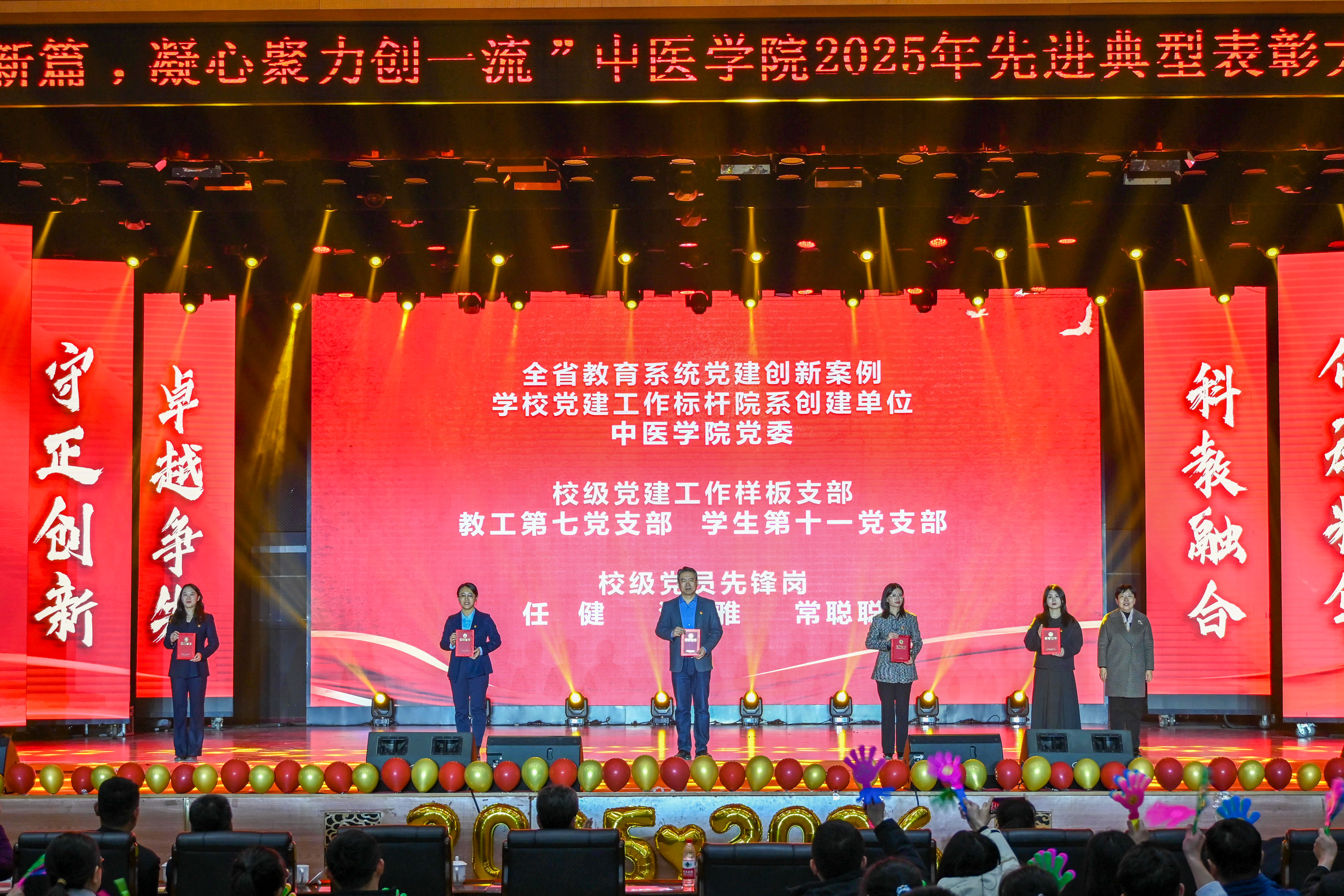 “继往开来画新篇,凝心聚力创一流”2025年先进典型表彰大会暨文艺晚会在长清校区岐黄礼堂举行。党委委员、副校长王琳,山东新中鲁中医医院院长李树沛出席活动并颁奖。
