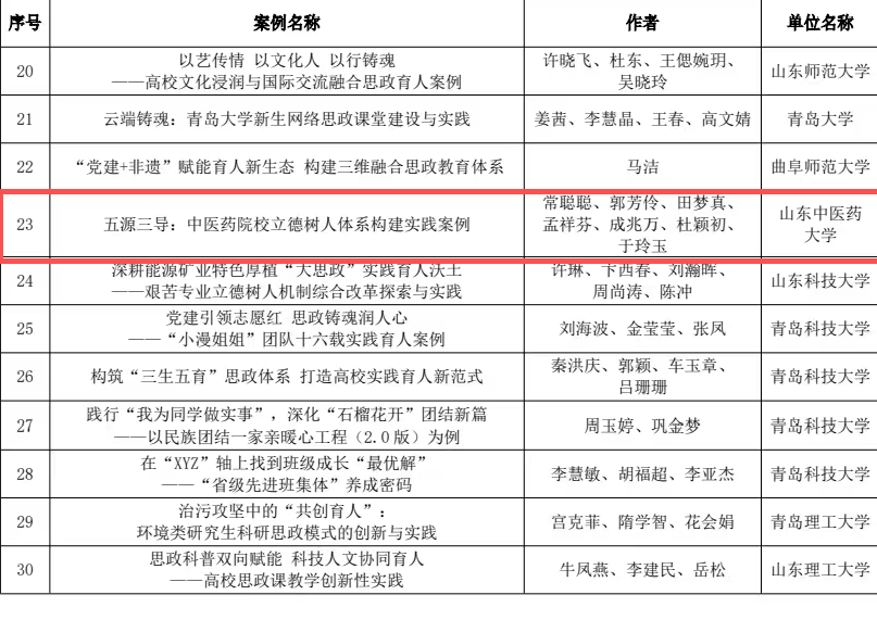 提交的《五源三导:中医药院校立德树人体系构建实践案例》荣获优秀工作案例一等奖,并受邀参加研究会2026年年会暨山东省高校思想政治教育优秀论文与工作案例获奖代表论坛。