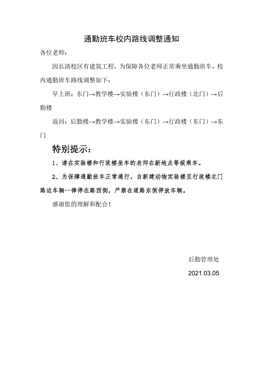 关于班车校内路线调整的通知