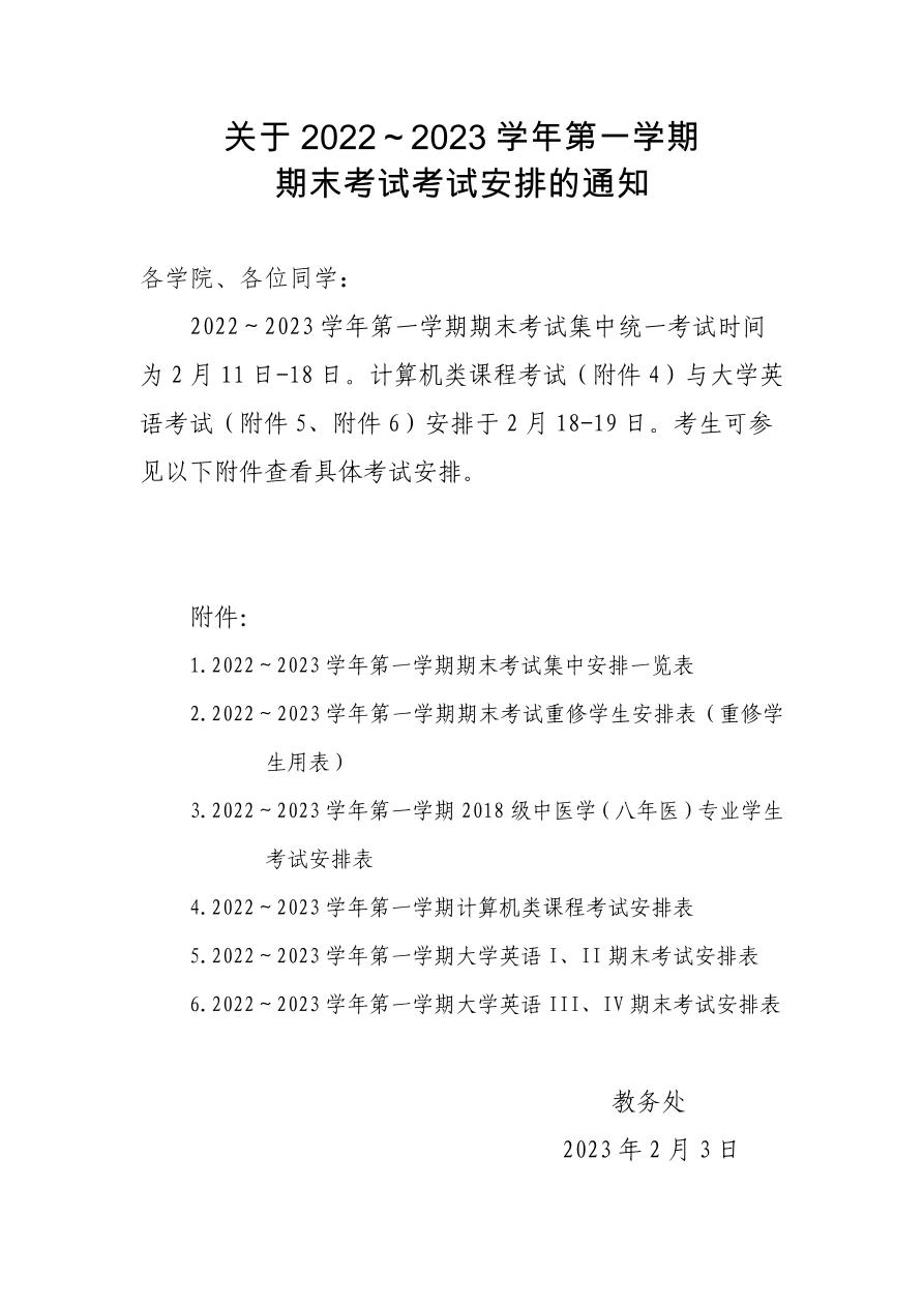 关于2022~2023学年第一学期期末考试考试安排的通知