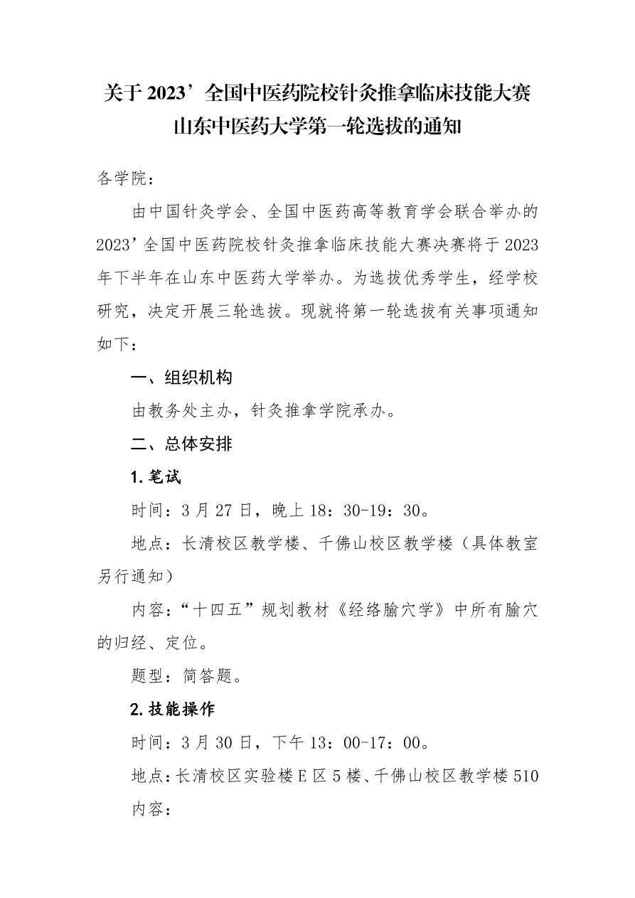 关于2023’全国中医药院校针灸推拿临床技能大赛自拍流出 第一轮选拔的通知.pdf