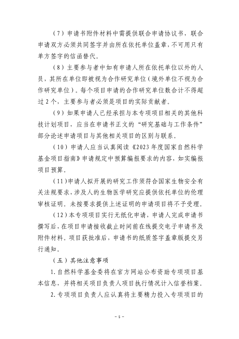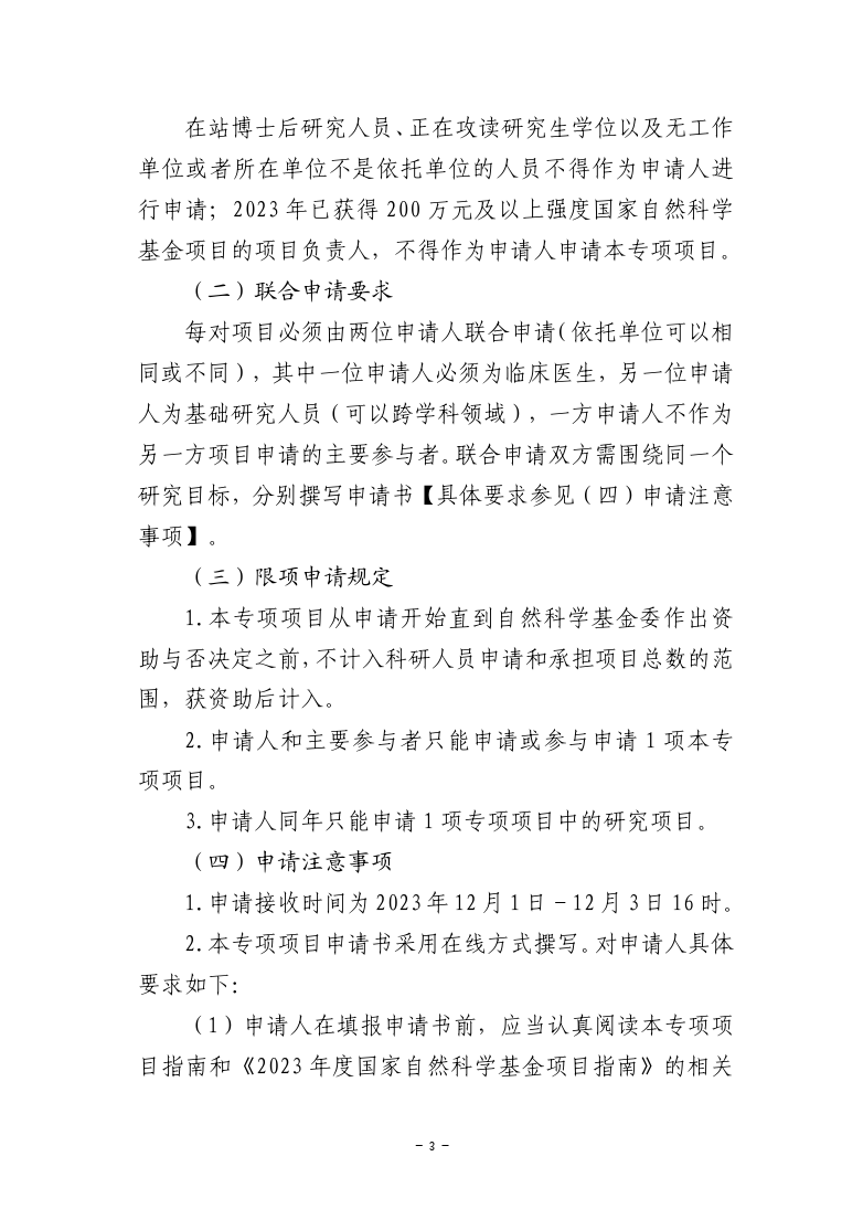 关于发布国家自然科学基金委员会医学科学部2023年度专项项目指南(第三批)的通告