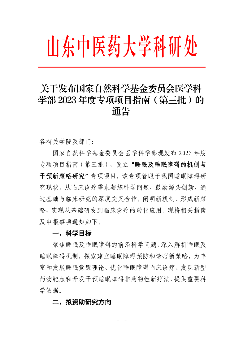 关于发布国家自然科学基金委员会医学科学部2023年度专项项目指南(第三批)的通告.pdf