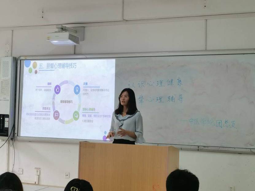 赵丹丹老师做了主题为“朋辈心理辅导”的专题讲座,详细的介绍了朋辈心理辅导的含义、理论基础、特点、素质要求、实施技巧等。并通过案例分析阐释了朋辈心理辅导的重要作用及危急事件的处理技巧,切实提高了同学们的朋辈心理辅导技能。