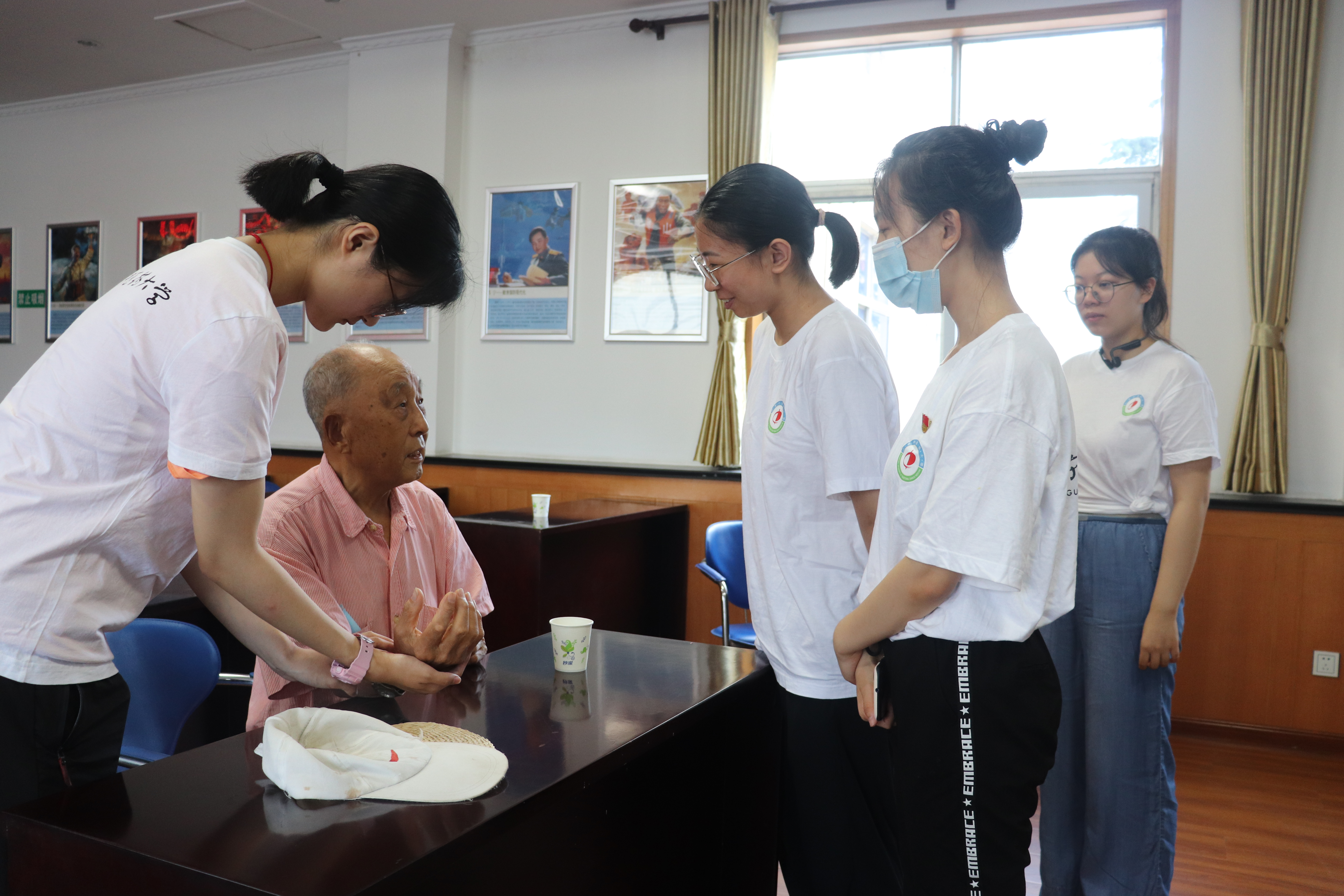 师生为干休所的老干部进行健康义诊服务,并从中医养生、运动保健、情志调摄等方面有针对性地宣讲健康保健知识。与此同时,老红军、老战士们为师生们讲述自己当年浴血抗战和立功入党的故事,实地讲授了一堂生动的“特殊党课”。