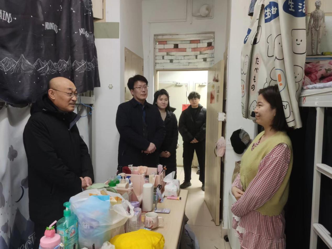 学院党委书记姜锡斌、党委副书记芦琳走访两校区学生宿舍,进行宿舍安全检查,指出要明确红线意识和底线思维,营造安全和谐的宿舍氛围。