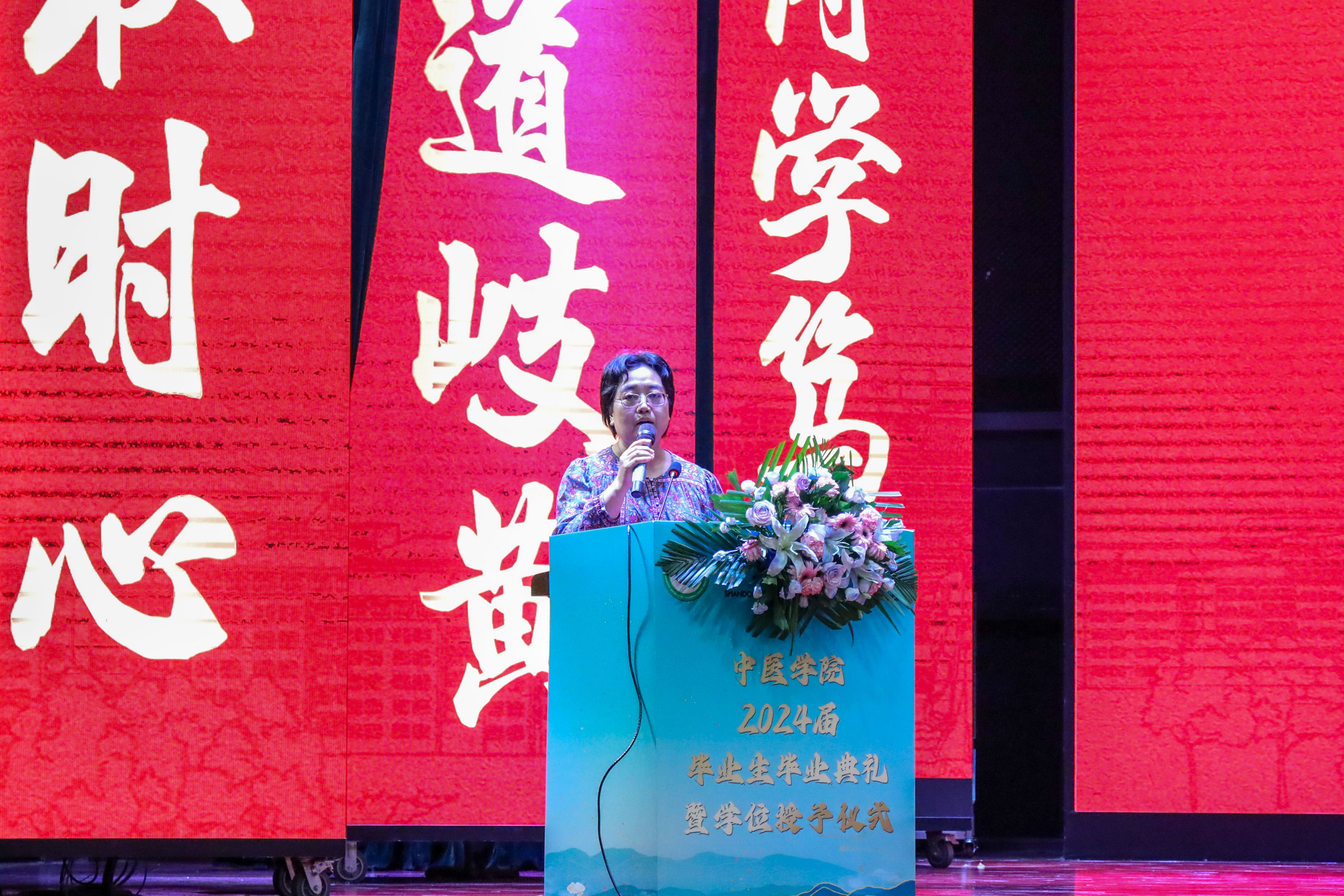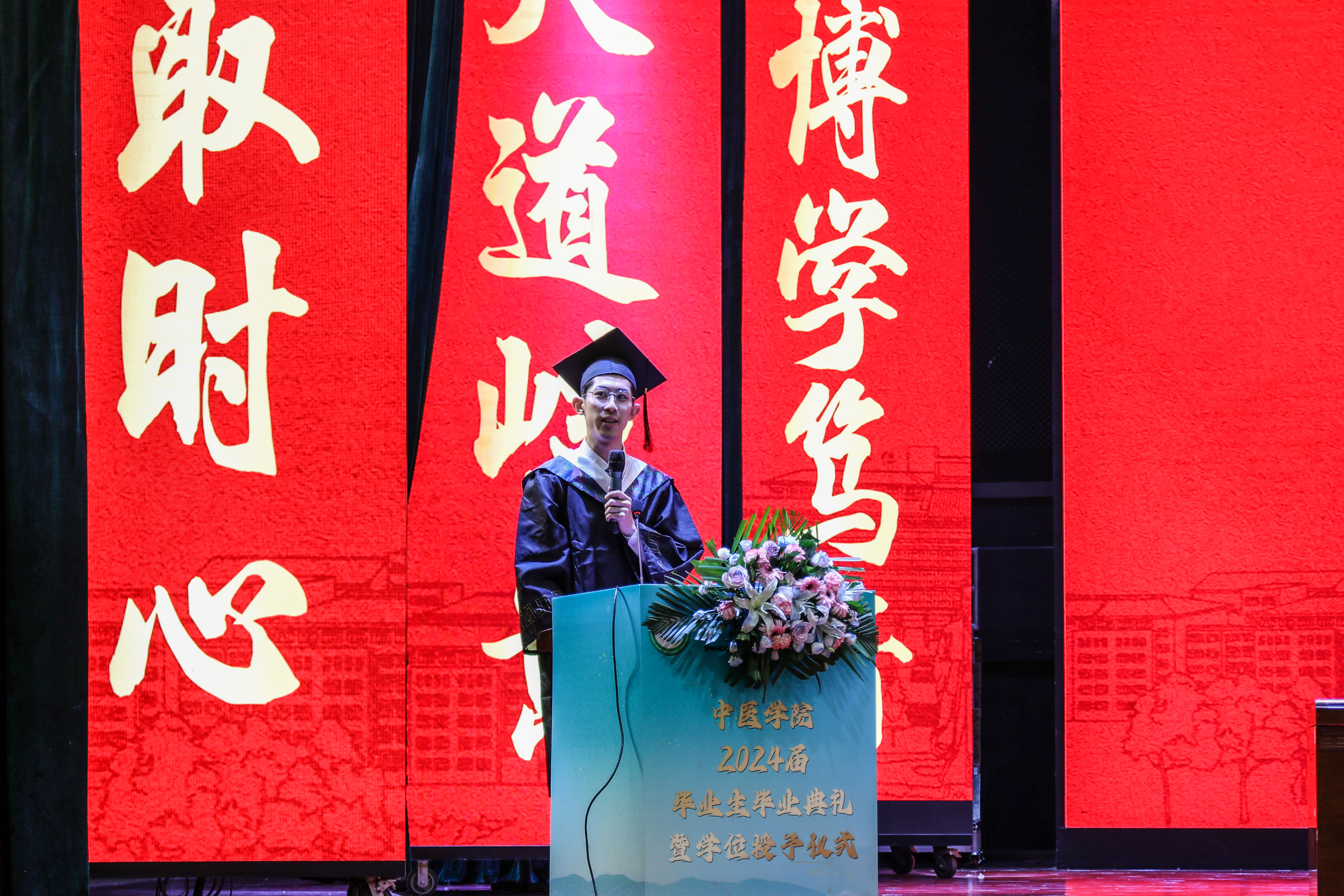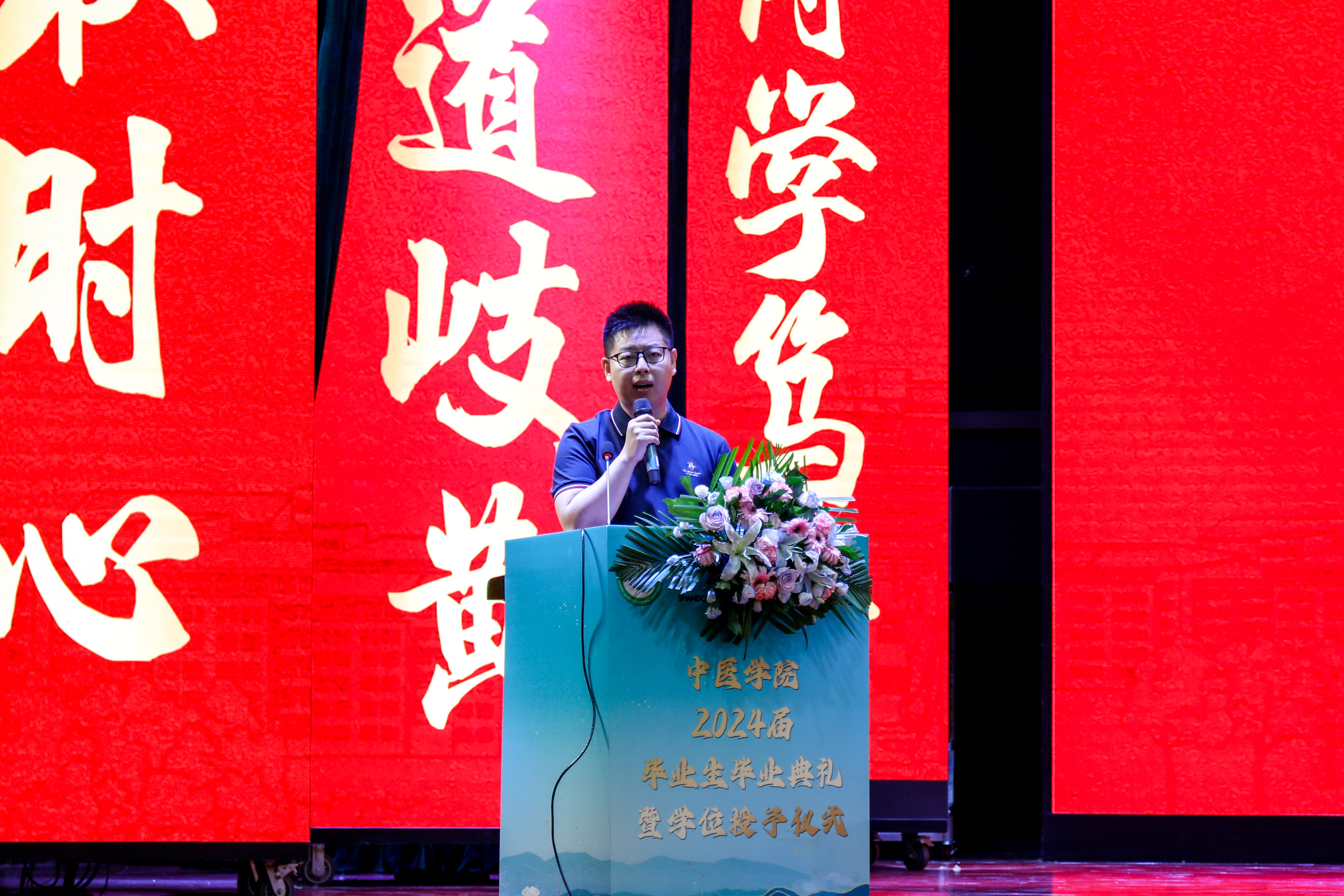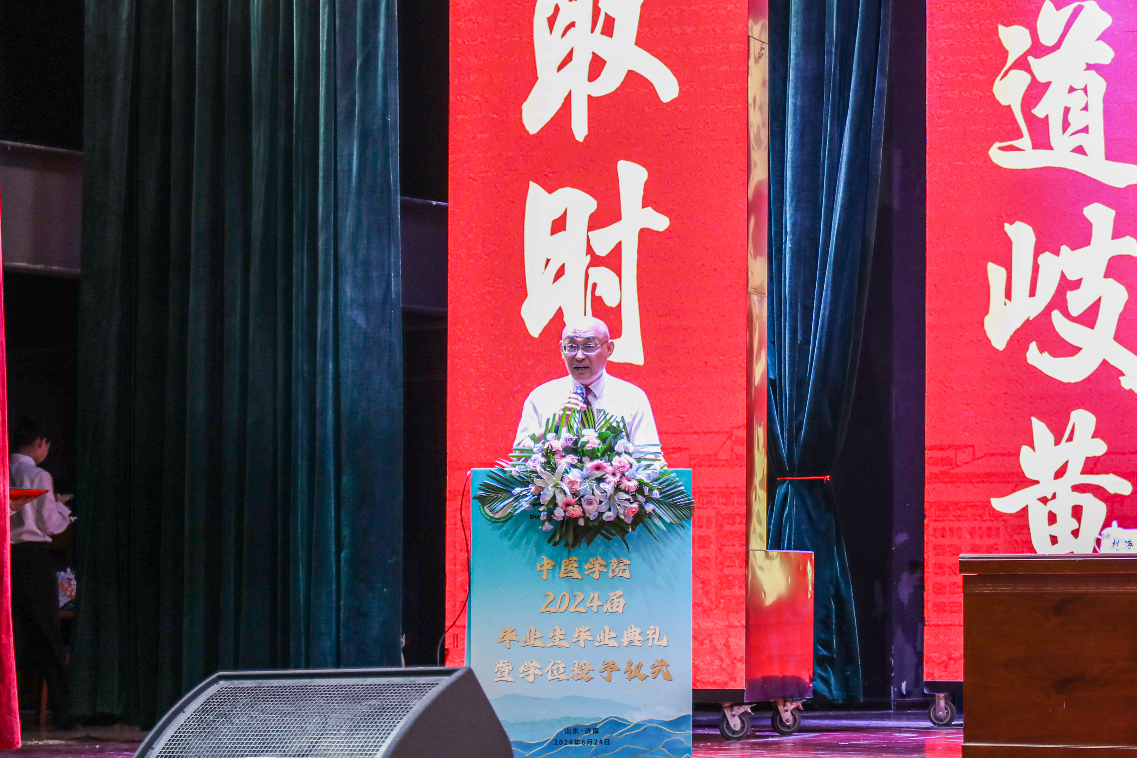 典礼在庄严的国歌声中拉开帷幕,学院党委书记姜锡斌向圆满完成学业、即将开启人生新旅程的同学们表示热烈祝贺,并以《守初心、担使命,做新时代中医人》为题为2024届毕业生上了“最后一课”,深情寄语2024届毕业生:一要坚守初心、固本培元,勇做胸怀家国的追梦者;二要坚定信心、博及医源,力做勇于担当的实践者;三要淬炼匠心,传承精华,争做锐意进取的创新者。