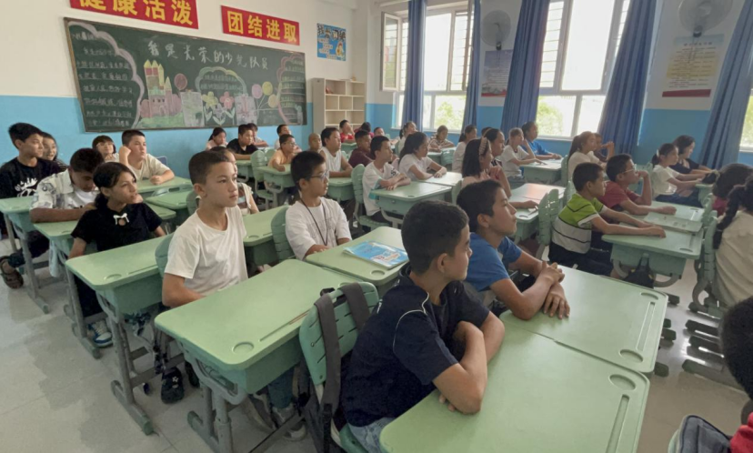 下午由于授课安排,我回到了队伍所负责的班级——五年级一班和二班。走进新的班级,面对崭新而又纯粹的面孔,他们的热情再一次将我打动:“老师你叫什么名字呀?”“你也是从山东来的吗?”“老师你也是大学生吗?”“今天上午怎么没有看见你啊老师?”我以为孩子们大多会沉默不善于表达,经过一下午的相处,发现他们并非如此。小朋友们上课抢着回答问题,下课也会围着我们问各种各样有趣却又意想不到、抑或让人苦笑不得的问题。“相逢的意义在于照亮彼此。”我想我将会永远记得孩子们的这份纯真,他们身上总有一种特质,让我觉得他们远比我想象的要更加勇敢和坚强。
