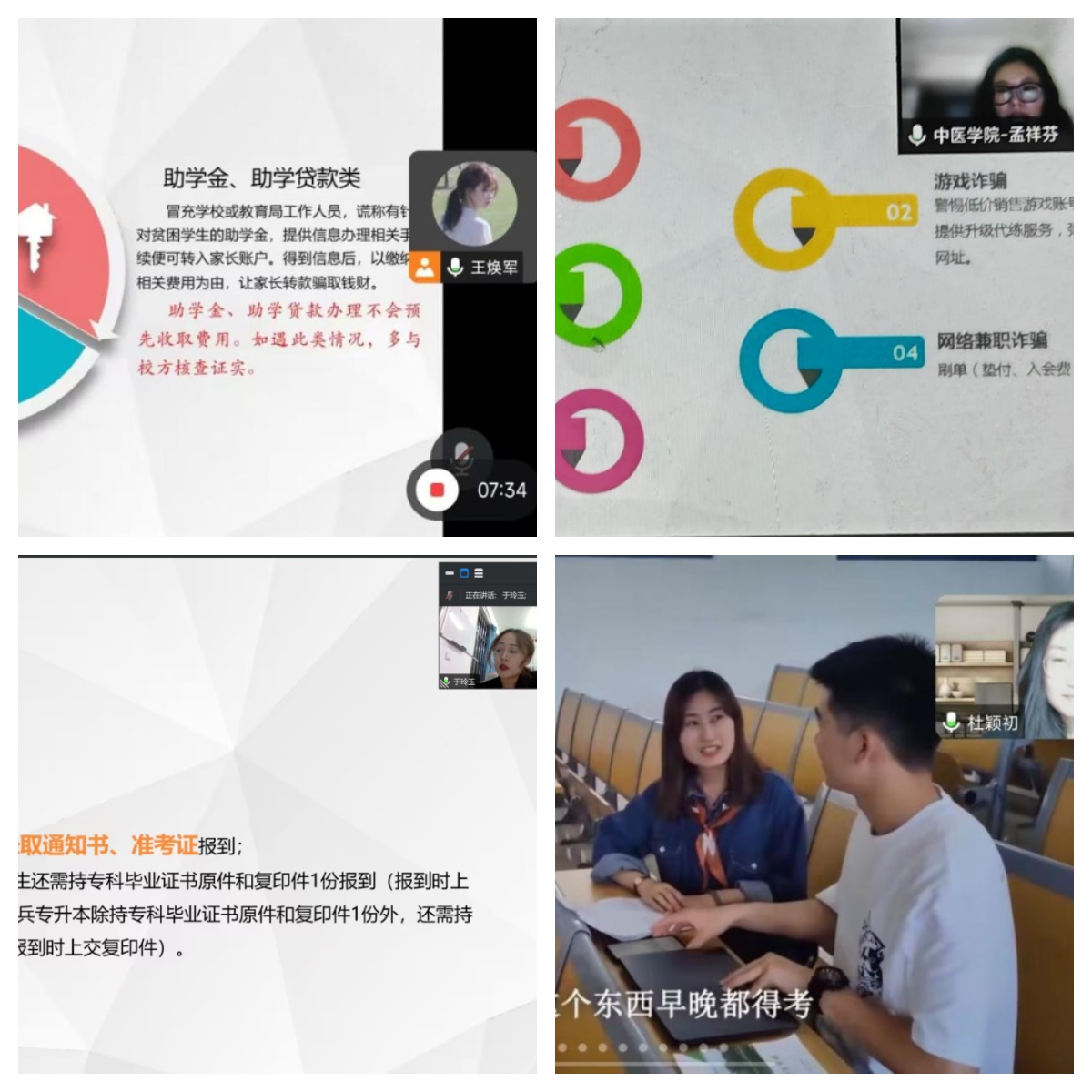 本次会议主要从学校及学院介绍、入学注意事项、安全教育以及反诈教育4个方面展开。