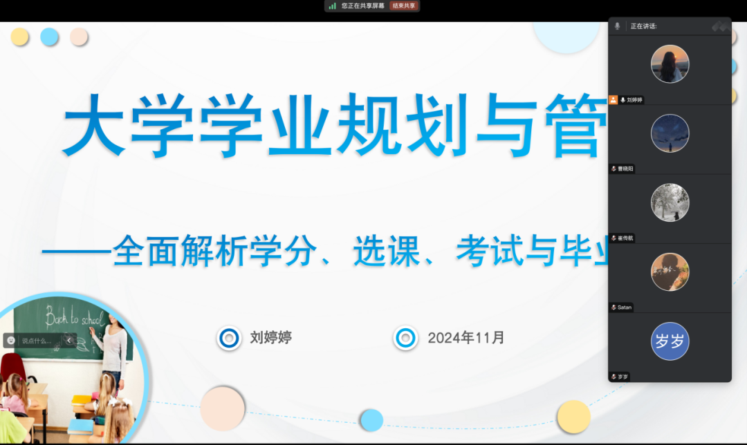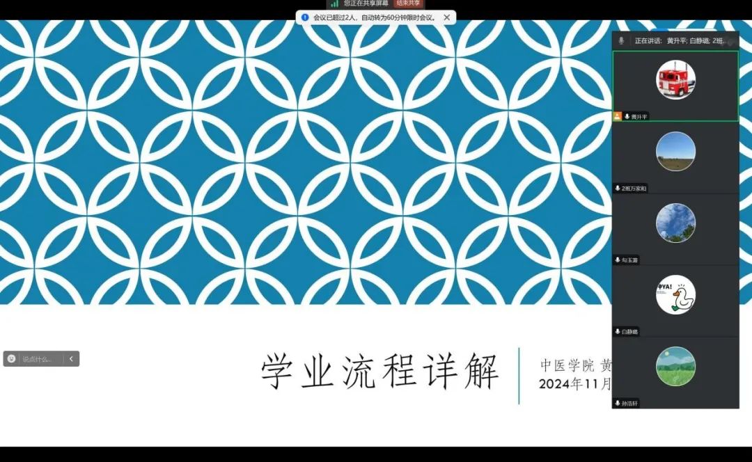 黄升平在线上开展了“学业流程详解”主题班会。他围绕学分制的理解、课程选择指导、考试管理认知、毕业条件解析及学业规划提升等五大教学目标展开授课。通过PPT展示、案例分析、互动讨论和角色扮演等多种教学方法,让学生们掌握了学分计算、选课流程、考试规章制度等基本知识,并深刻理解了合理规划学业生涯的重要性。