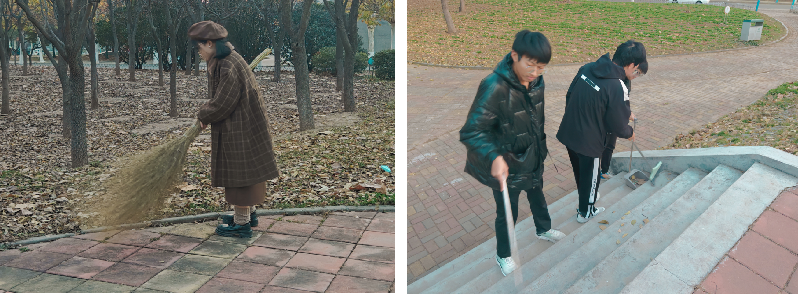 为纪念药王孙思邈、传承中医药文化,自拍流出 的同学们对校友门进行了清扫。