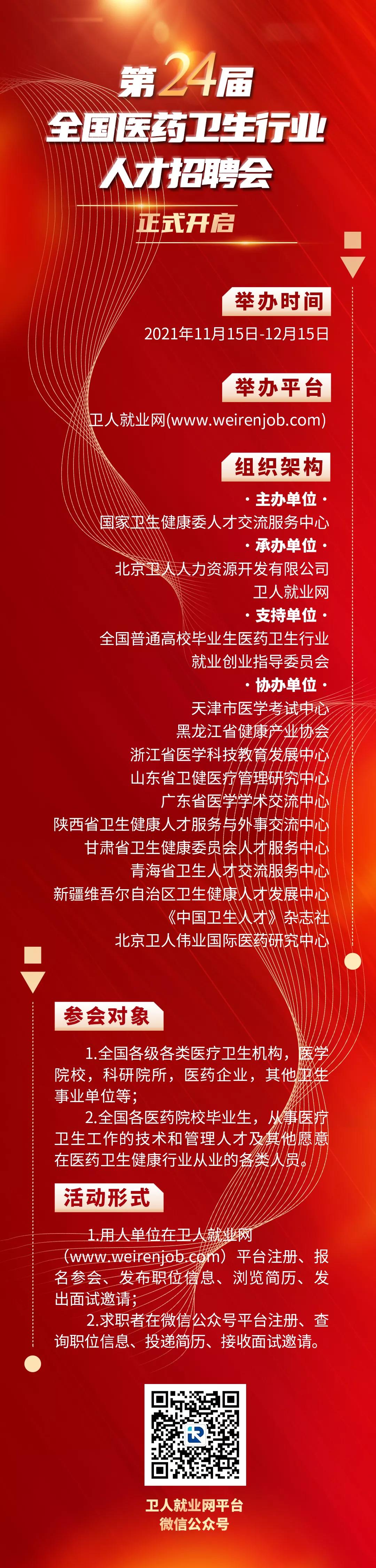第24届全国医药卫生行业人才招聘会 现已正式开启!欢迎参加!
