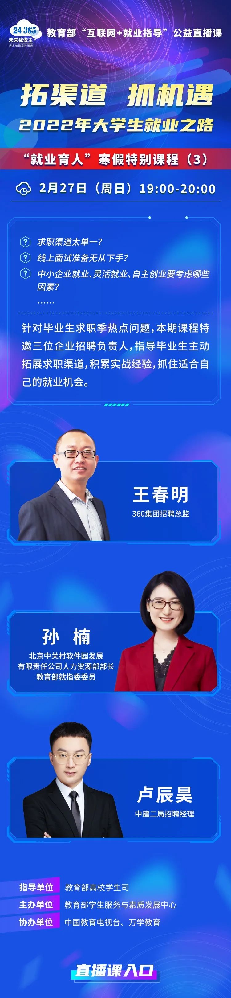 课程预告 | 教育部24365就业公益直播课:拓渠道 抓机遇 2022年大学生就业之路——“就业育人”寒假特别课程(3)