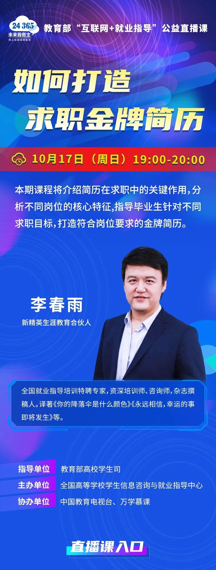 课程预告 | 教育部24365就业公益直播课:如何打造求职金牌简历