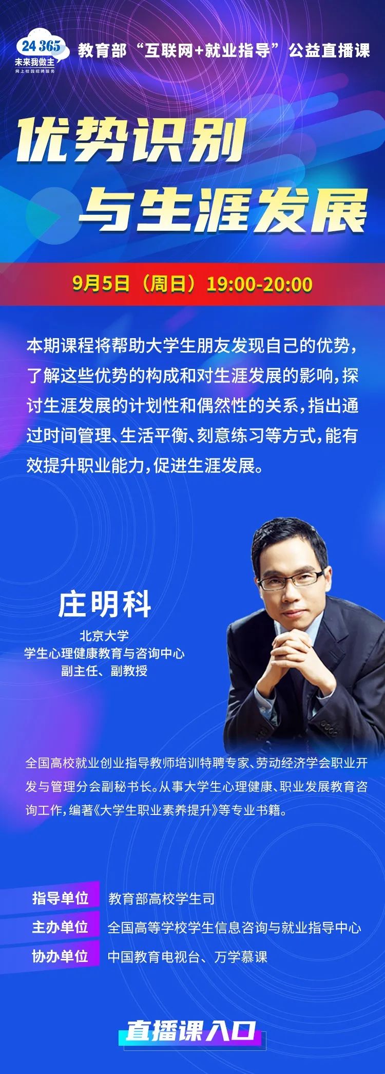 课程预告 | 教育部24365就业公益直播课:优势识别与生涯发展