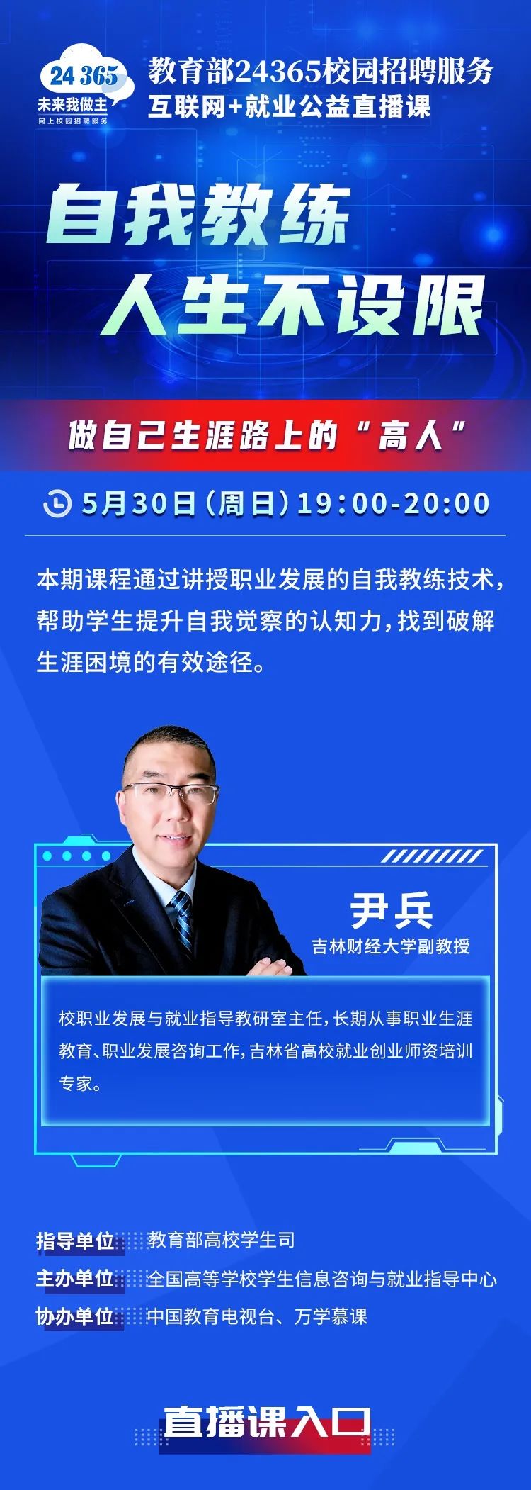 课程预告 | 教育部24365就业公益直播课:自我教练 人生不设限——做自己生涯路上的“高人”