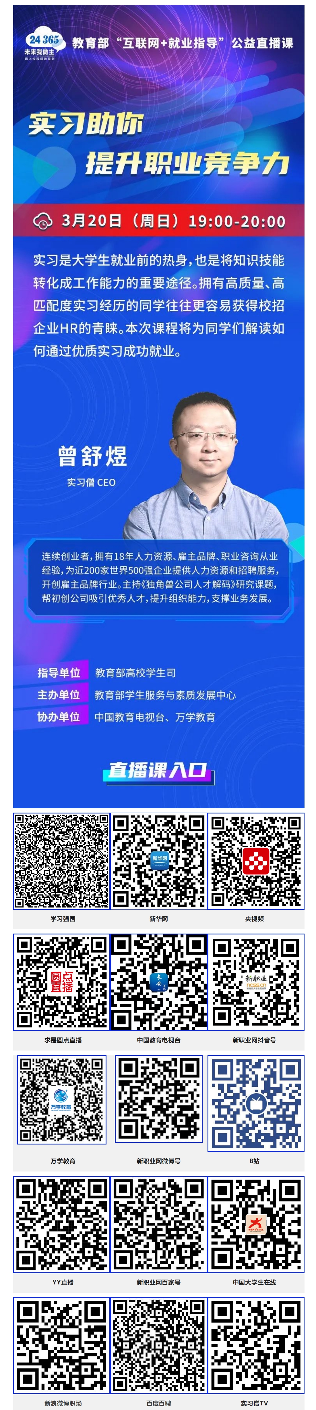 课程预告 | 教育部24365就业公益直播课:实习助你提升职业竞争力