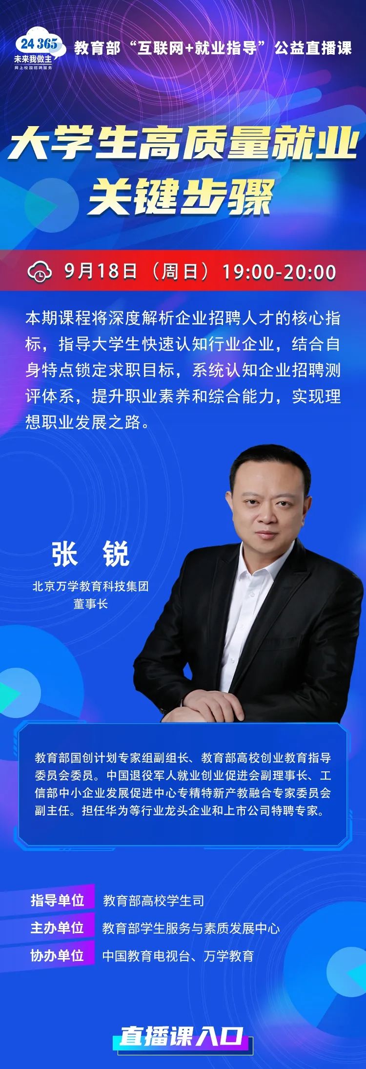 课程预告 | 教育部24365就业公益直播课:大学生高质量就业关键步骤