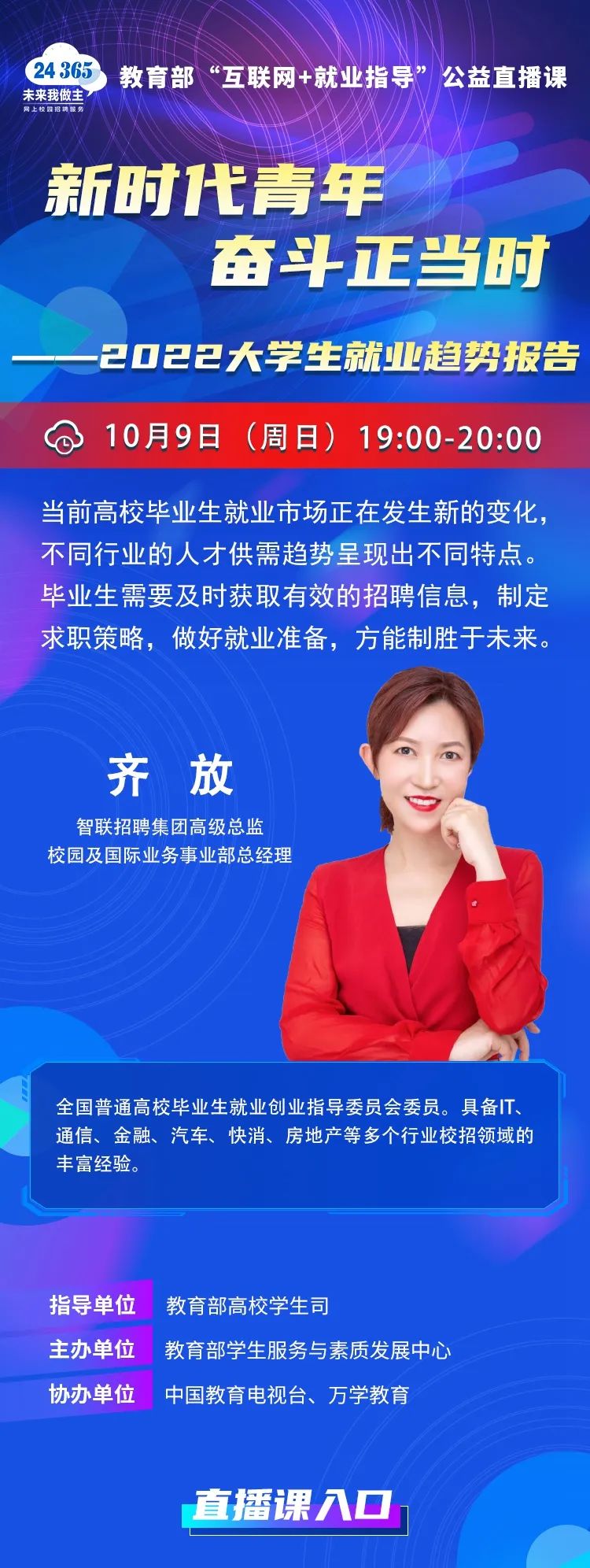 课程预告 | 教育部24365就业公益直播课:新时代青年 奋斗正当时——2022大学生就业趋势报告