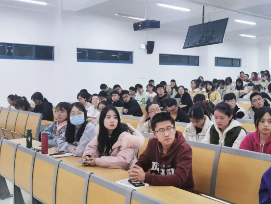 王雪晴师姐结合自身推免经历从学校选择、专业优势、参加活动、学习习惯,特别是英语学习等方面分享了个人经验,并提出“做计划”的必要性和具体方法,分享最后对同学们说:“泪水、压力和痛苦都是正常的,调整过后继续走下去,终会有收获的。”