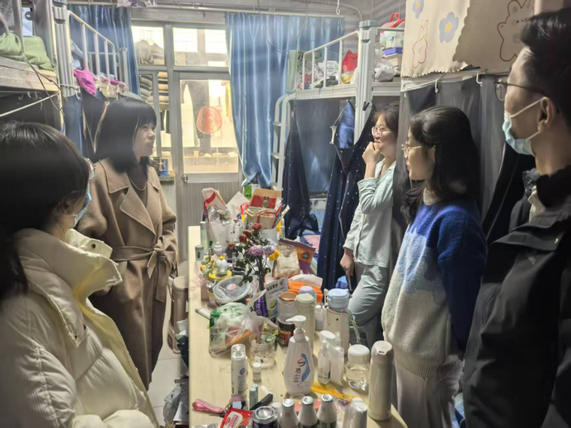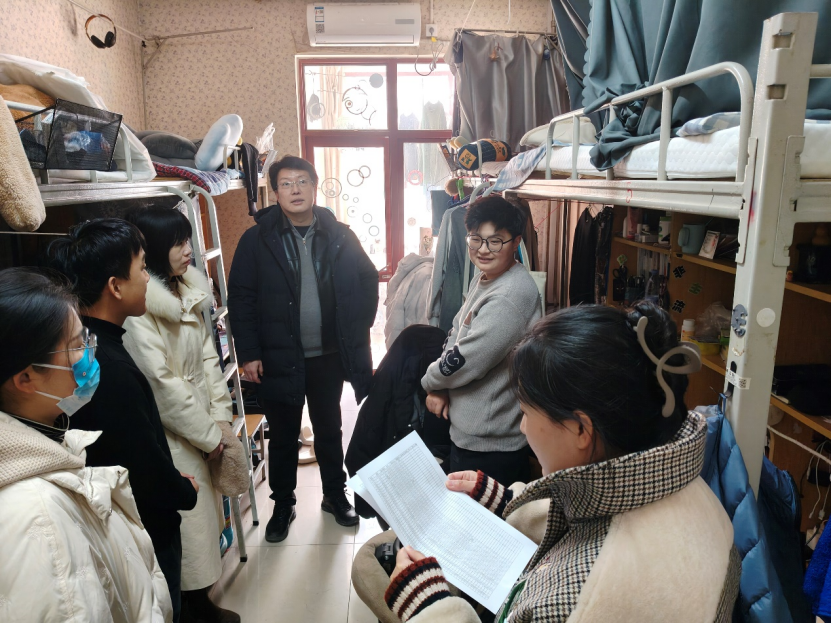 寒假临近,为确保学生安全、有序离校,度过一个平安、充实的假期,1月11日、13日,学院党委书记芦琳、副书记郭芳伶分别带队走访长清校区和千佛山校区学生宿舍,两校区辅导员陪同检查。