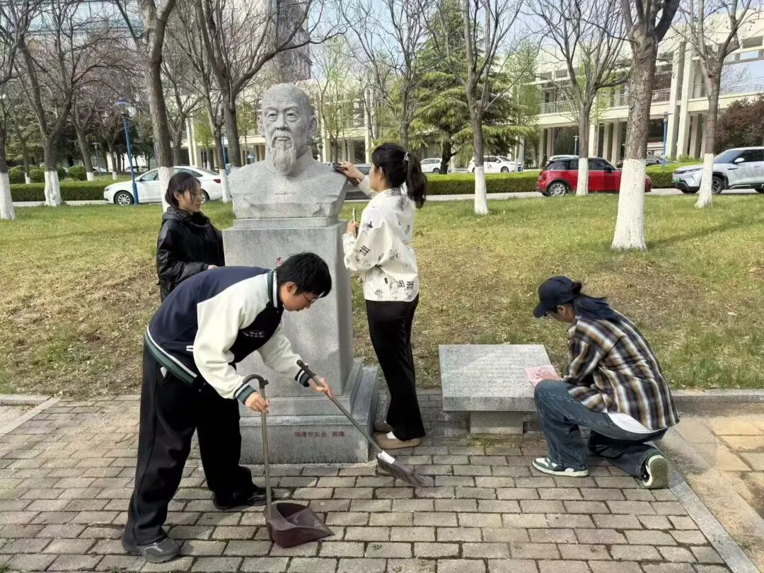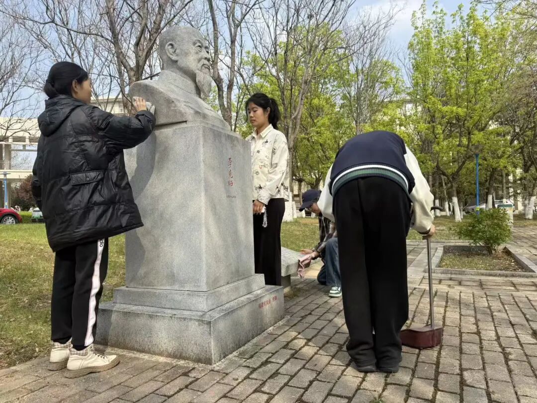 学院组织学生开展校园“十老”雕像清扫活动,同学们以躬身实践的方式,擦拭雕像、清理周边,向学校中医药事业奠基者致以崇高敬意,在劳动中感悟先辈无私奉献精神,坚定传承中医药事业的信念。
